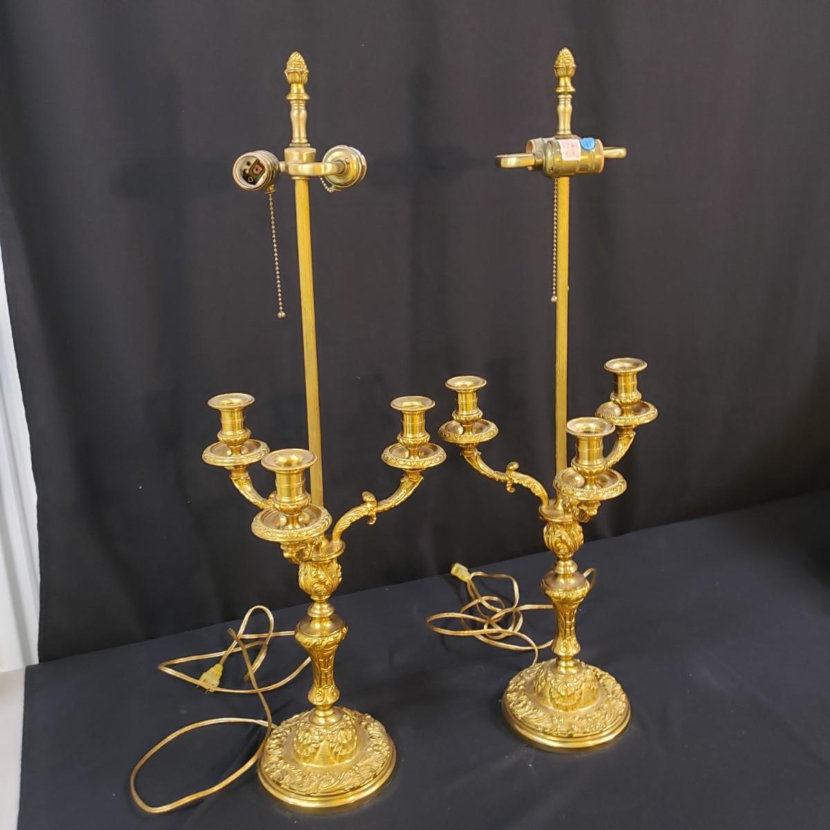 2 Matching Solid Ornate Candelebra Style Brass Lamps (C-D-KD)