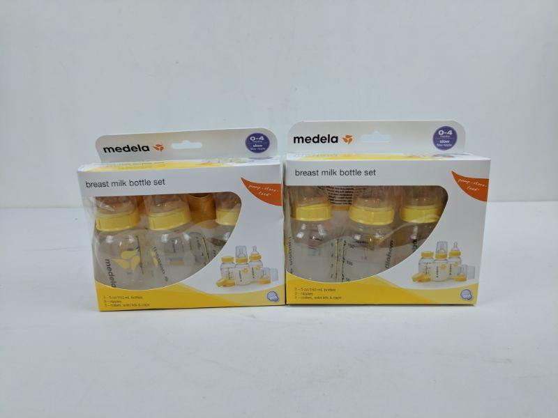 2 Medela Breast Milk Bottle Sets, 0-4 Months Slow Flow Nipples, 6 Bottles - New