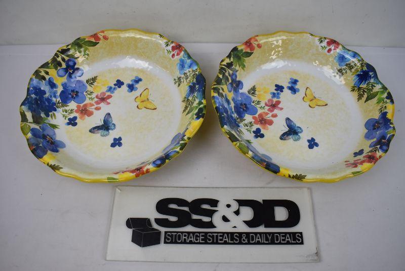 2 Melamine Bowls from Pier 1 Imports. Yellow/Blue Floral/Butterflies Print