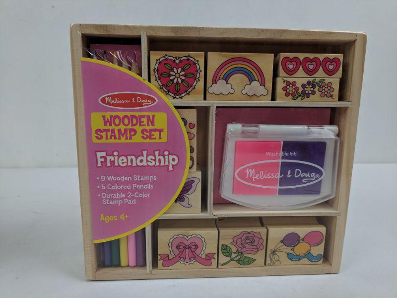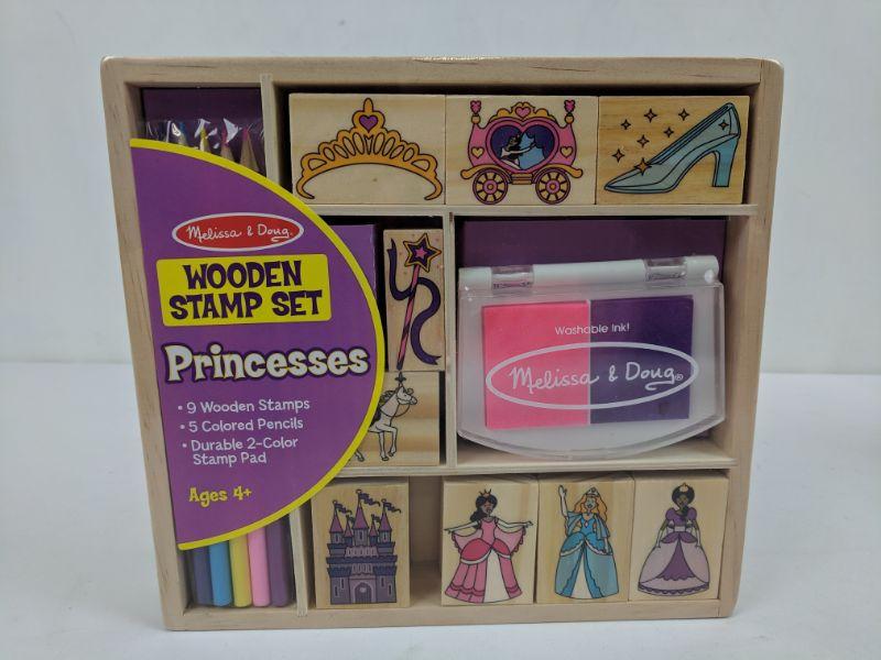 2 Melissa & Doug Wooden Stamp Sets, Princess & Friendship - New