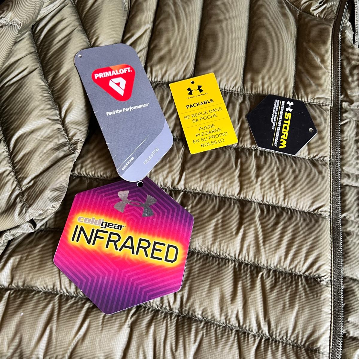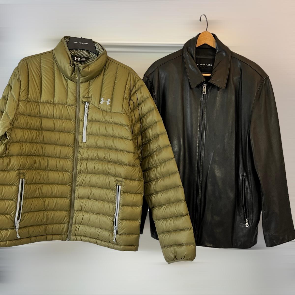 Under Armour down jacket, new with unattached tags. Size XL. Leather Andrew Marc jacket size XL in great condition.