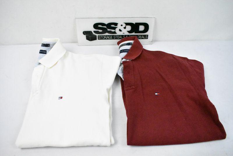 2 Men's Polo Shirts by Tommy Hilfiger, Short Sleeve Size XL: Cream & Maroon