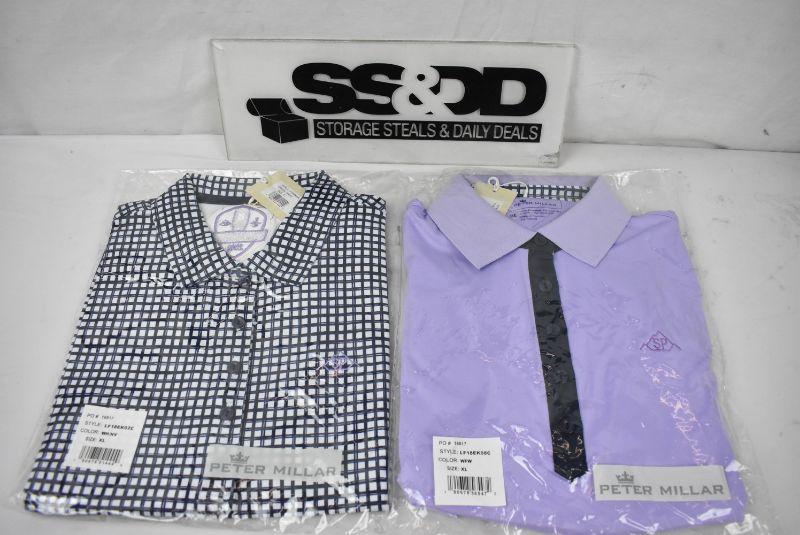 2 Men's Shirts by Peter Millar, Size XL. 1 Plaid, 1 light purple - New
