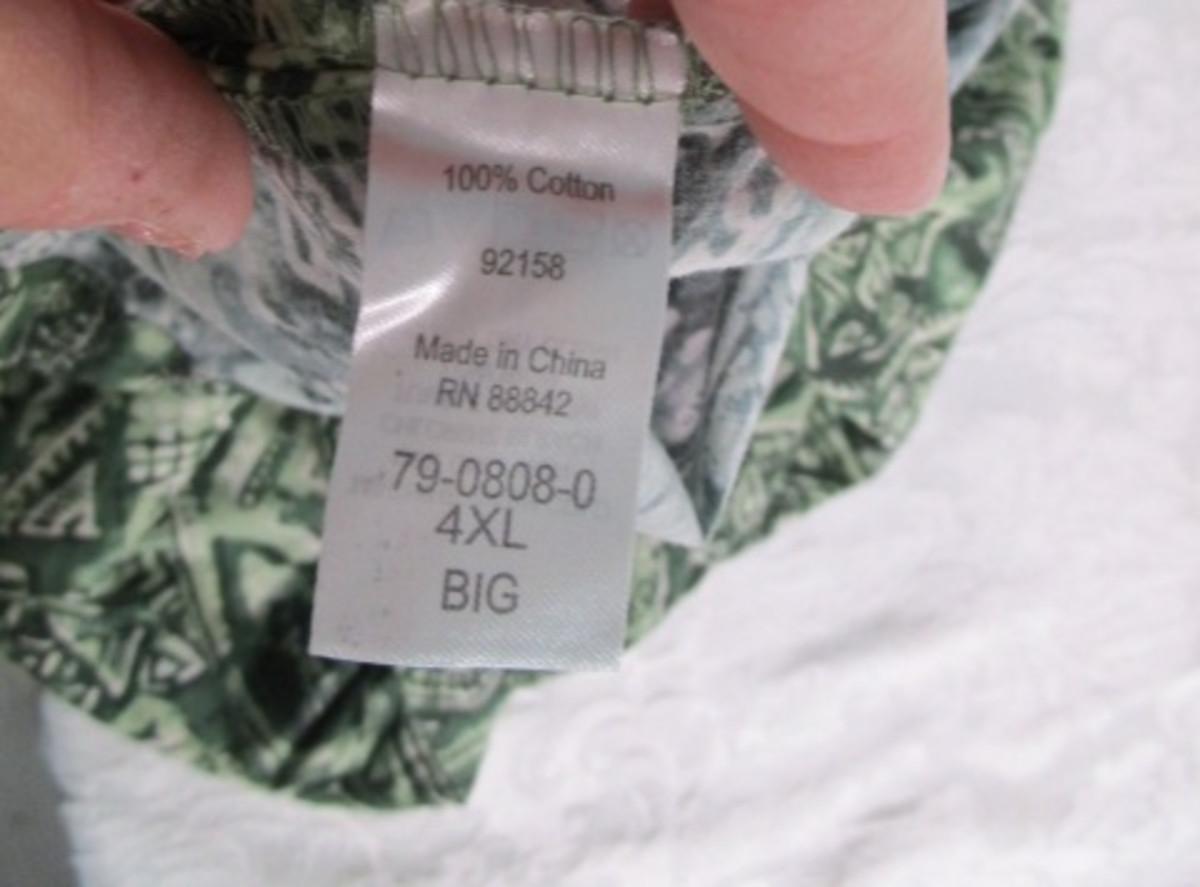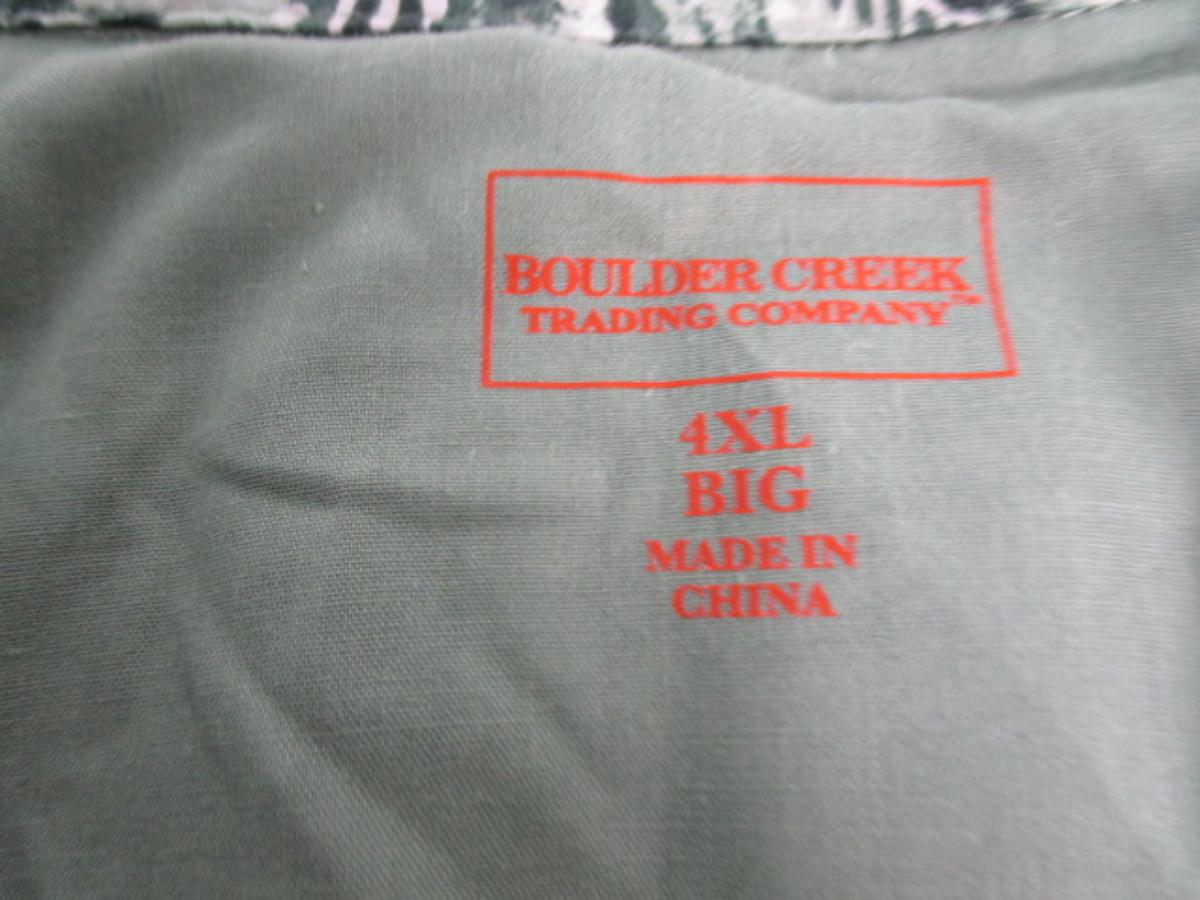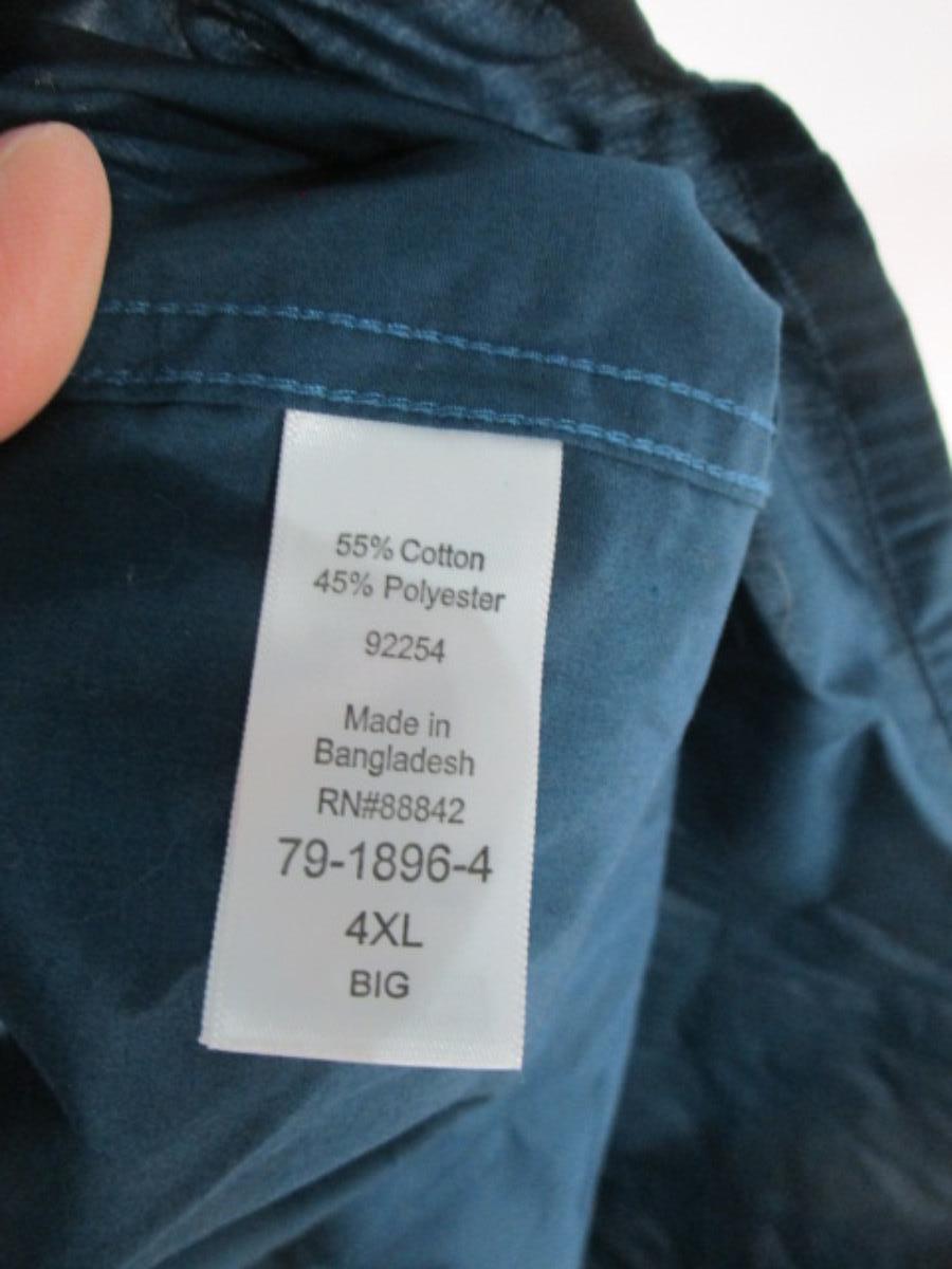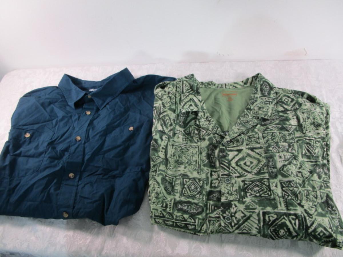 Look new, Teal one is King Size brand 55% cotton 45% polyester, the Hawaiian shirt is Boulder Creek 100% cotton - M