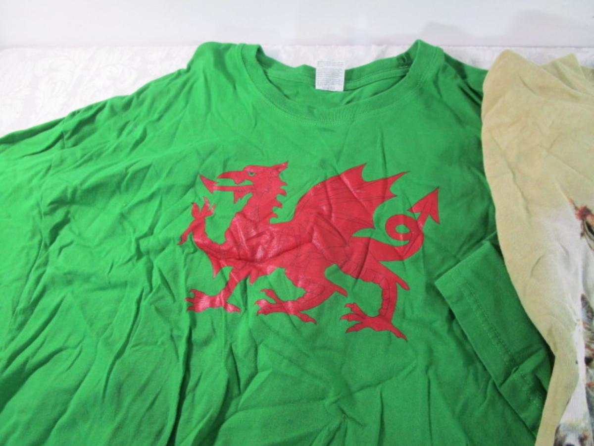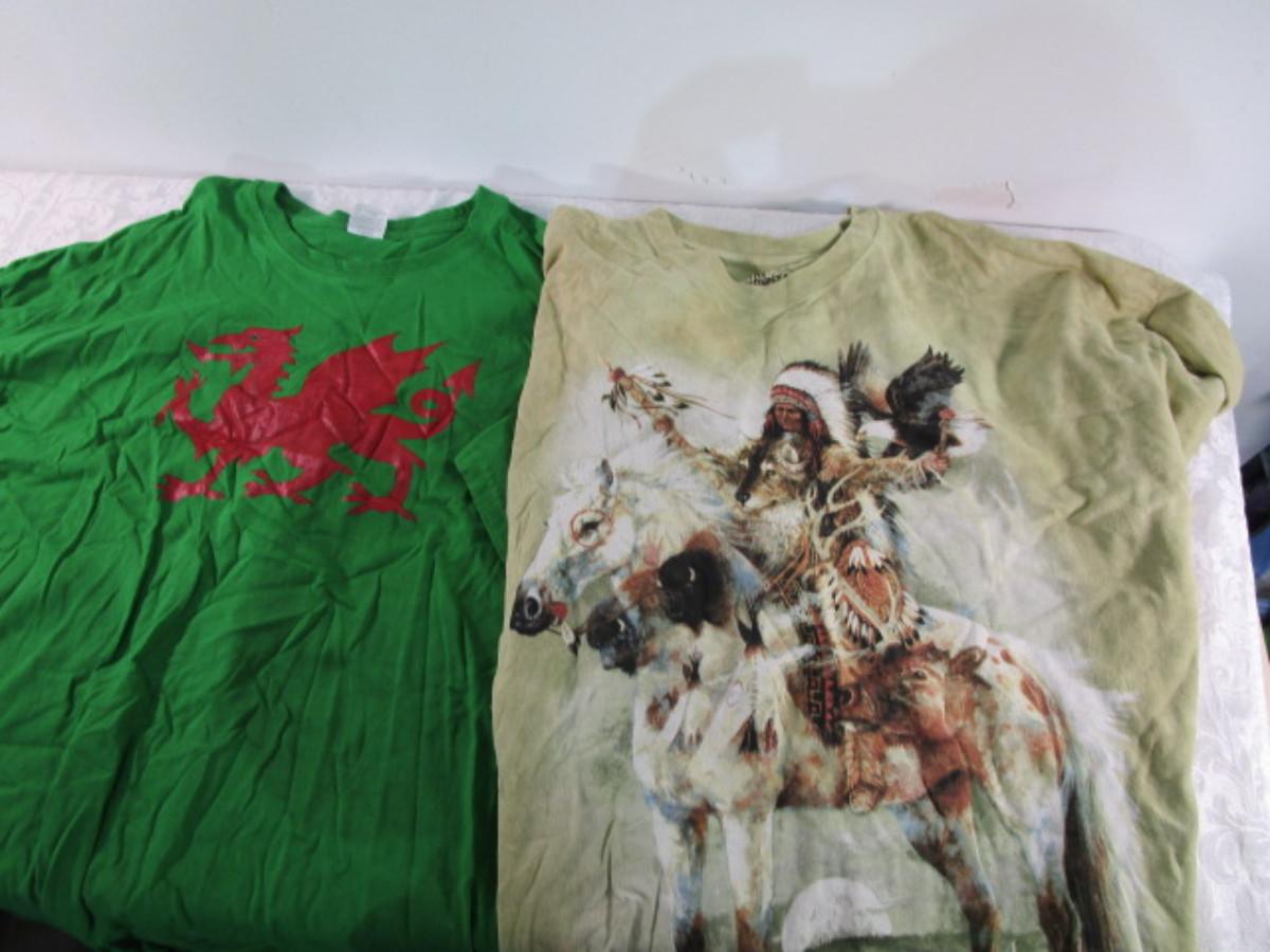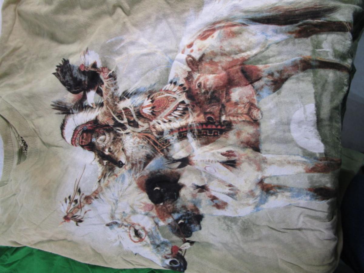 Both are 100% cotton, one has a Welsh dragon, the other has a Native American with eagle & horse - M