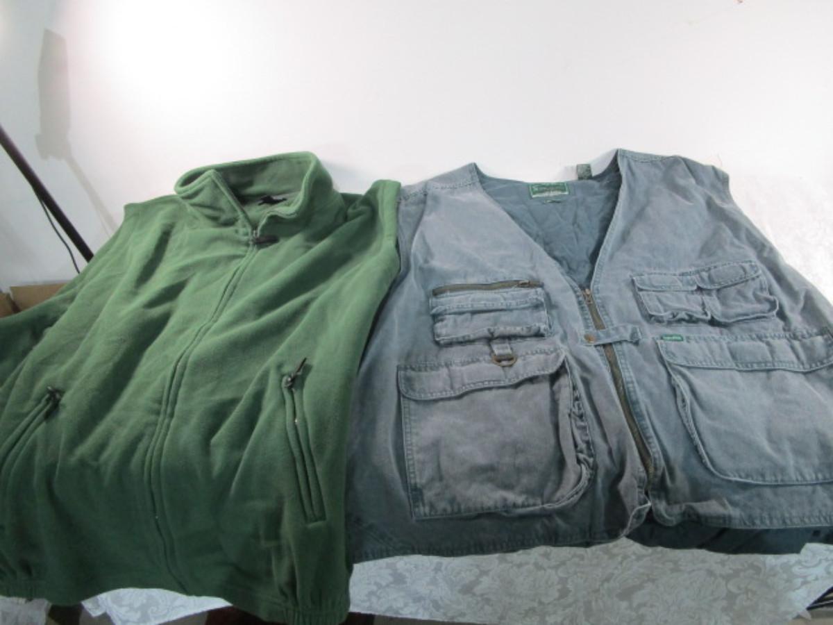 One is a fleece vest, the other is a hunting/fishing vest with zippered pockets - M
