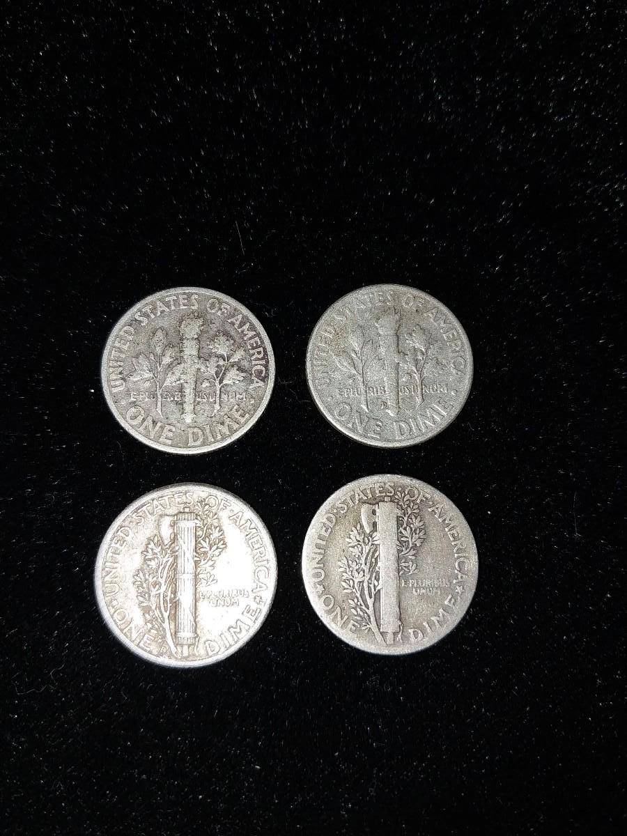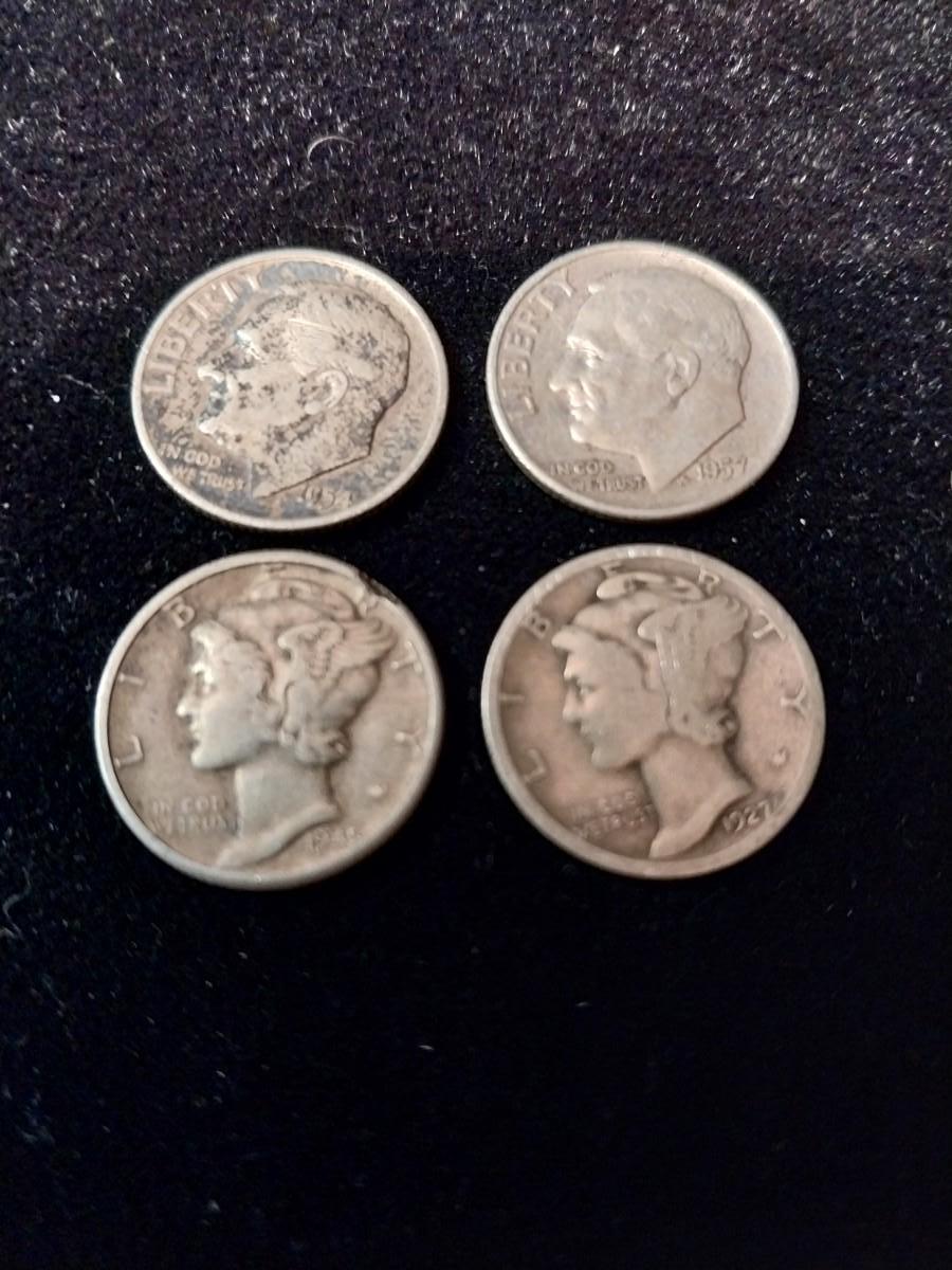 2 MERCURY AND 2 ROOSEVELT SILVER DIMES
