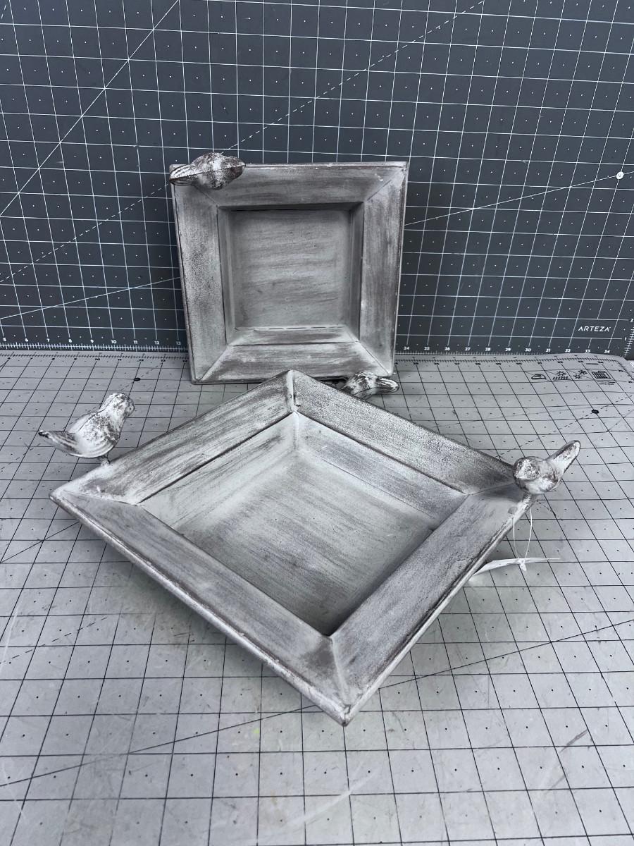 Larger is 10-1/2" Square, Planters pans, Trays, Shallow Mini Birdbath.