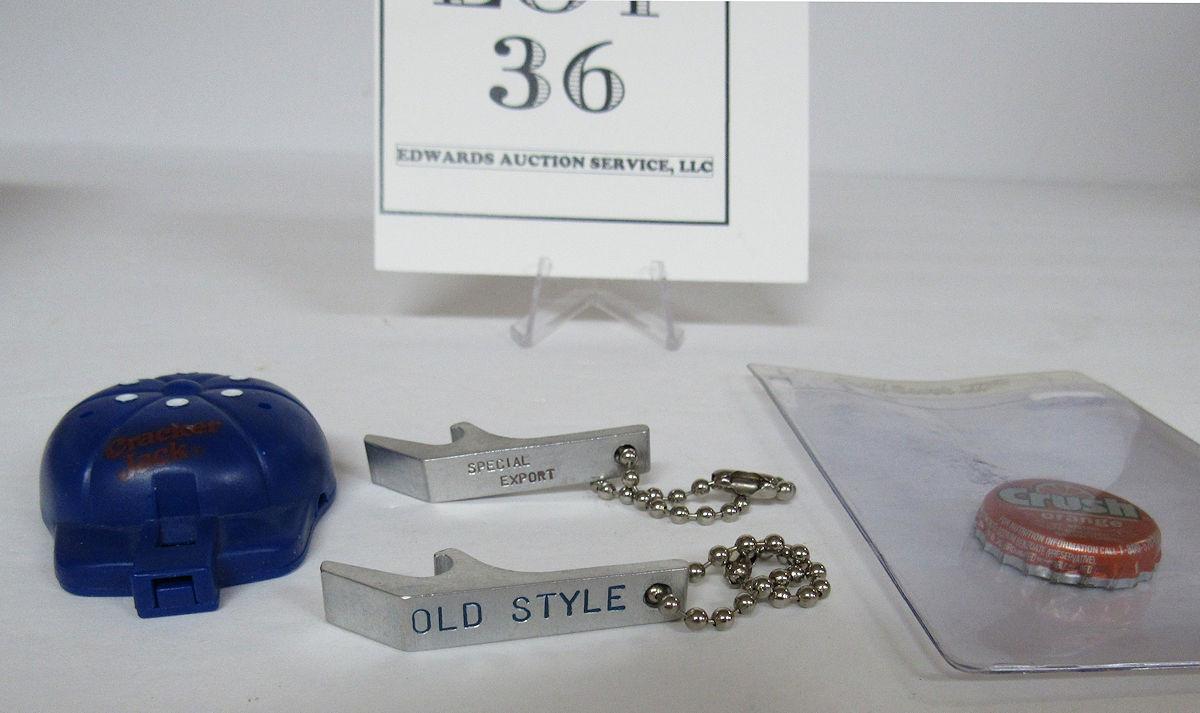 2 Metal Bottle Openers, Special Export, Old Style, Orange Crush Bottle Cap, Cracker Jack Baseball Cap Bottle Cover/Cap