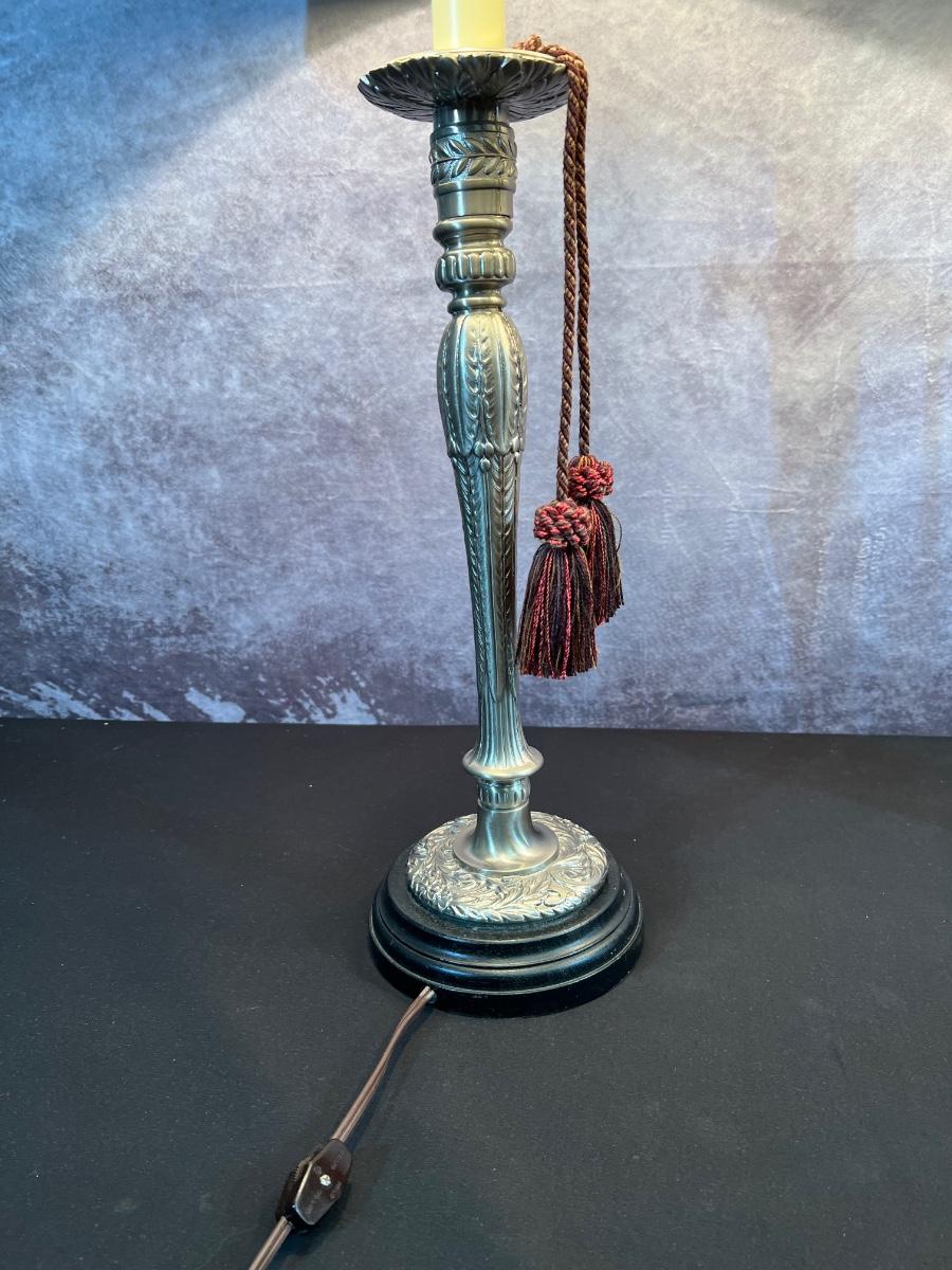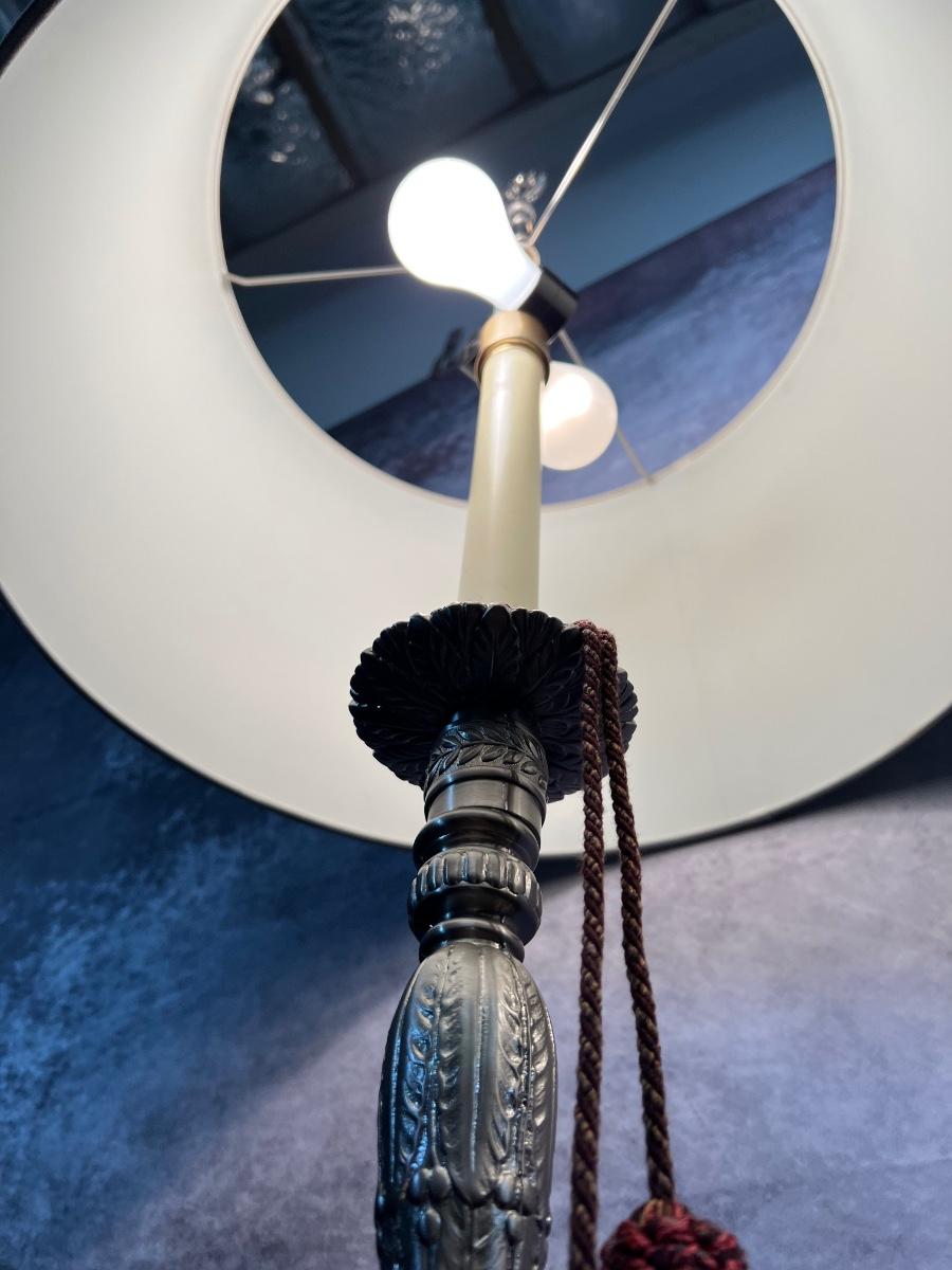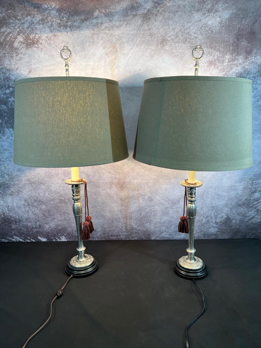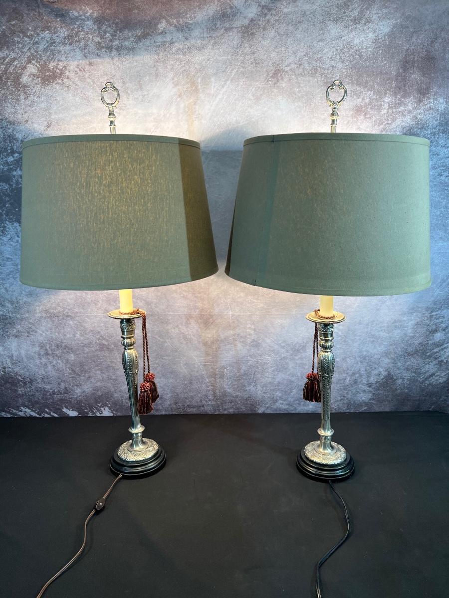 2 Metal Candle Stick Lamps 6"x38", 19" Shade