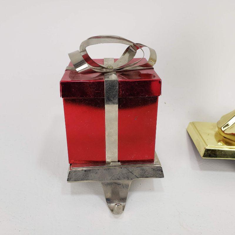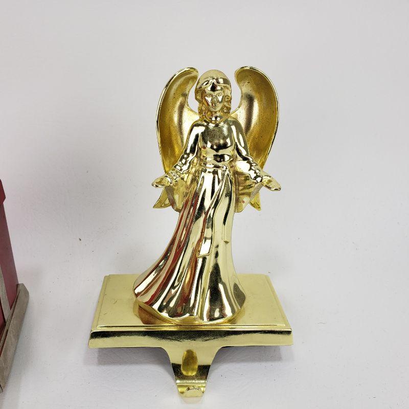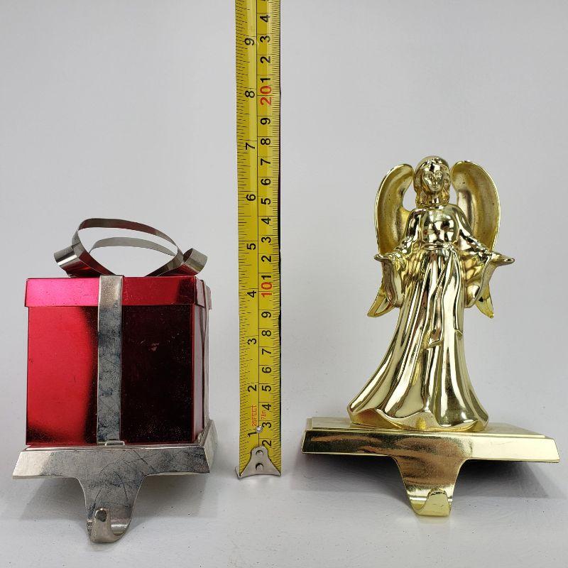 2 Metal Christmas Stocking Holders - Angel and Gift