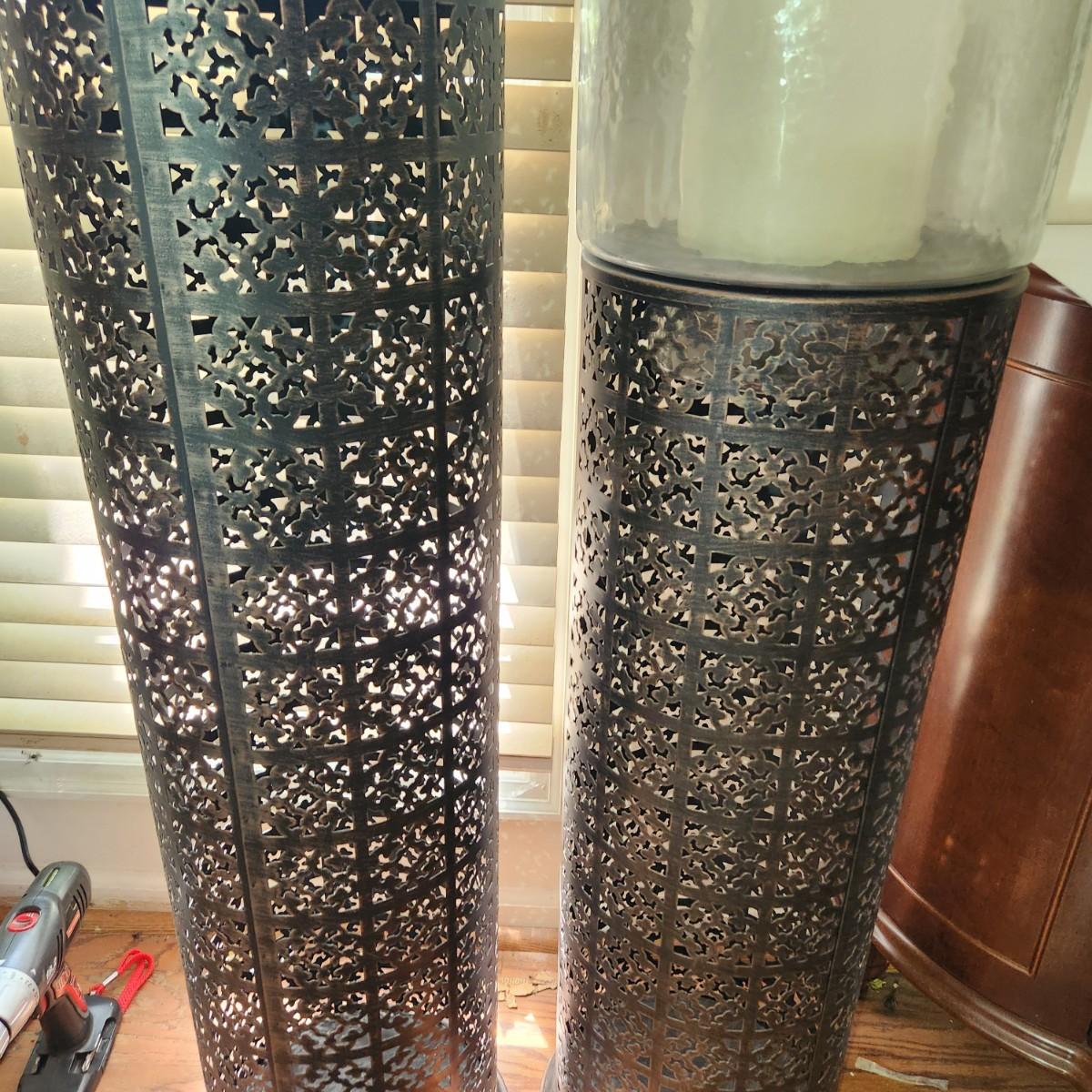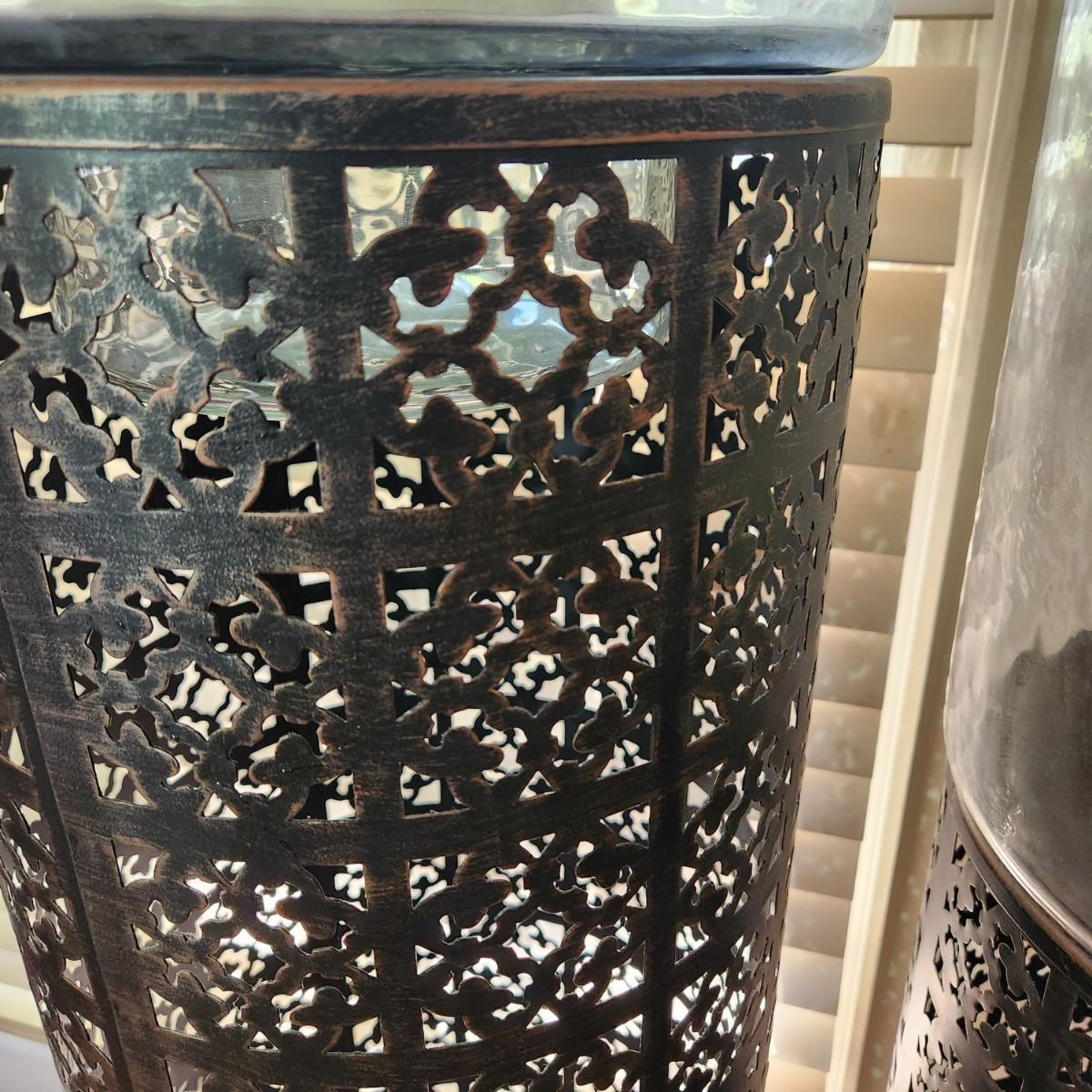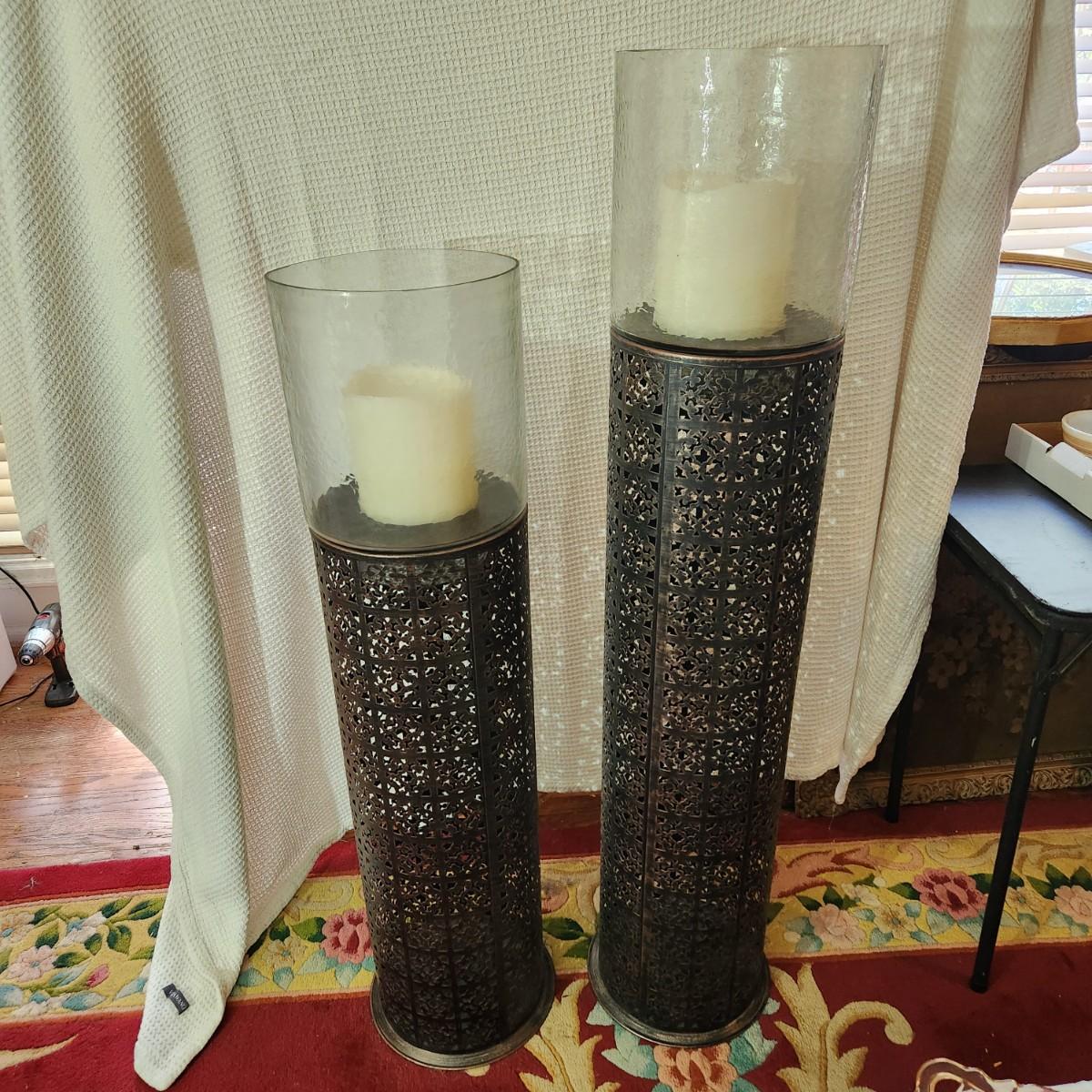 2 Metal Floor Candle Holder Plant Stands 10" Dia 44" & 52"