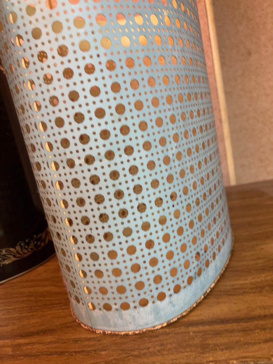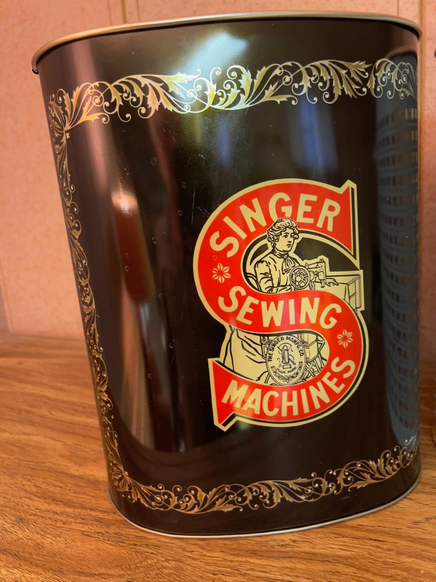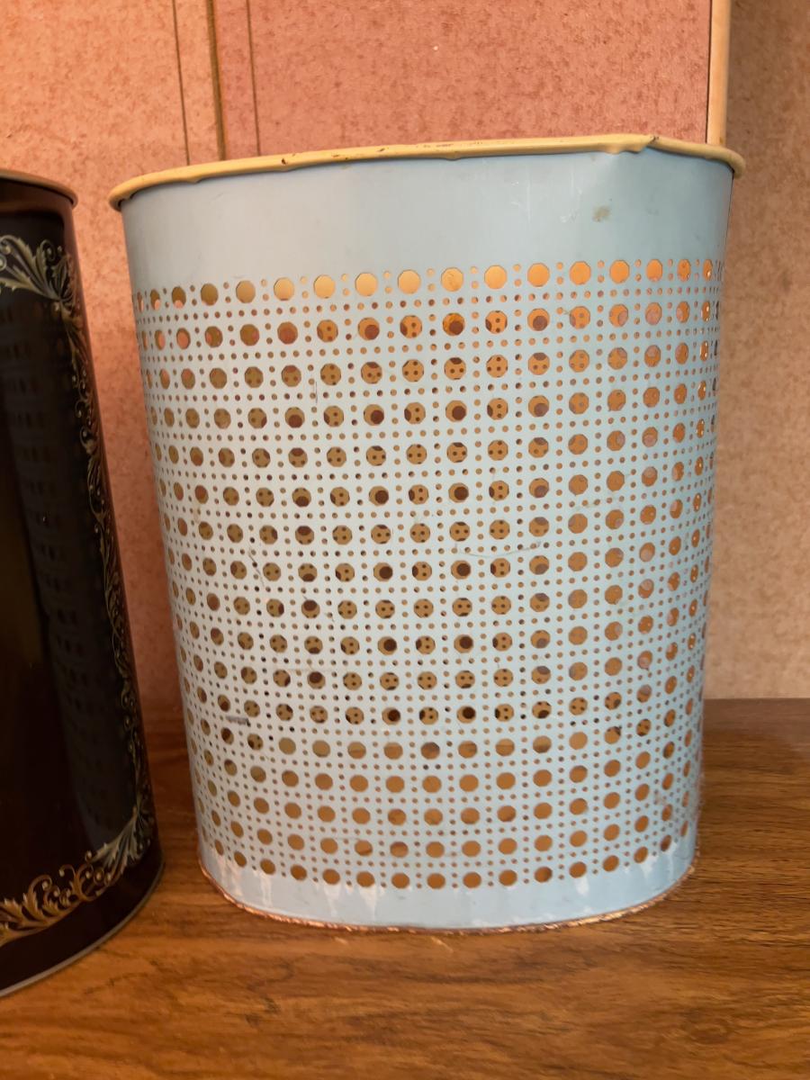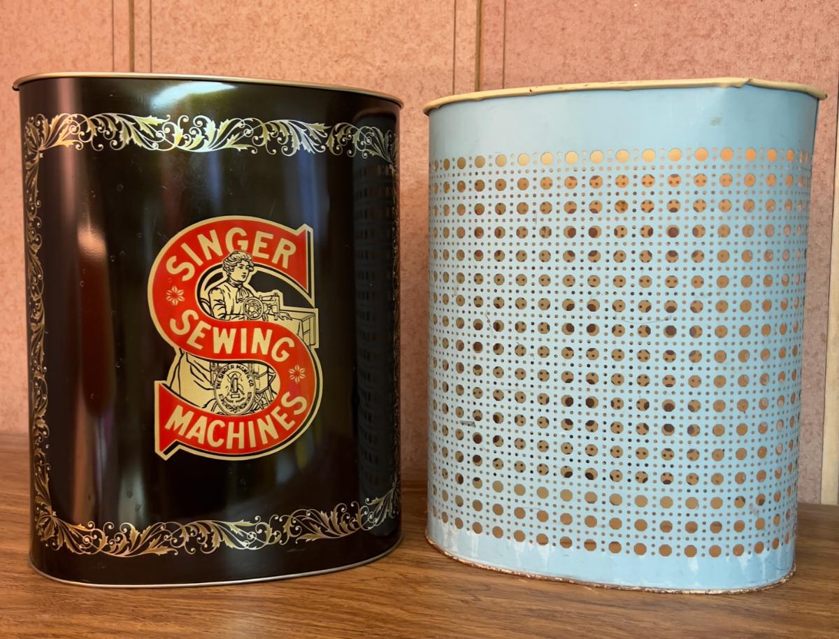 2 Metal Garbage Cans - Singer and Basket weave look!