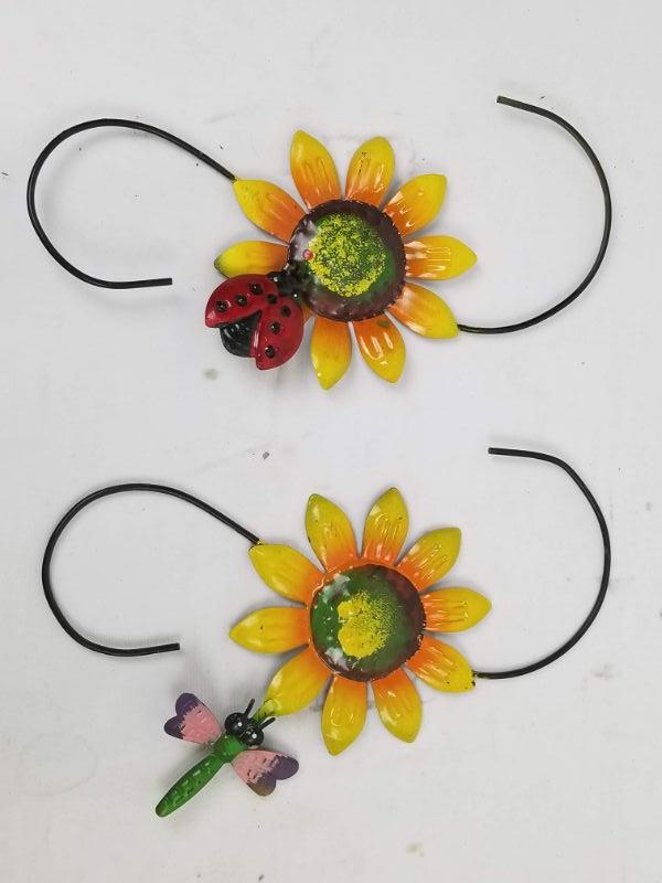 2 Metal Hanging Sunflower Decorations, Firefly, Ladybug