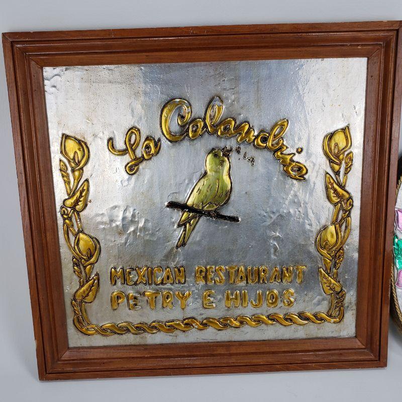 2 Metal Relief Wall Art - La Calandria Restaurant and a Gold Finch