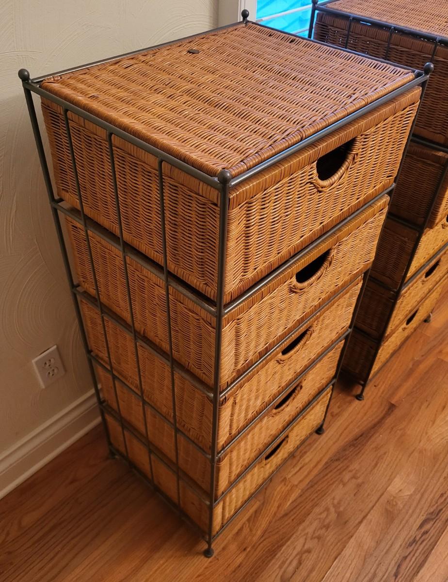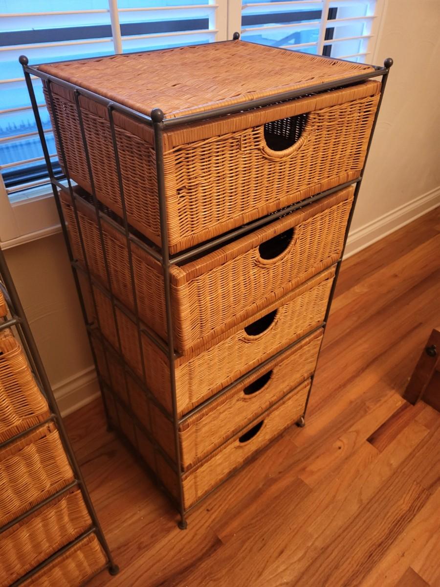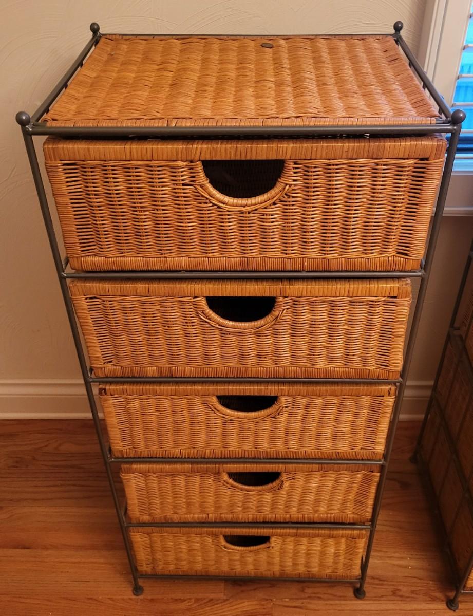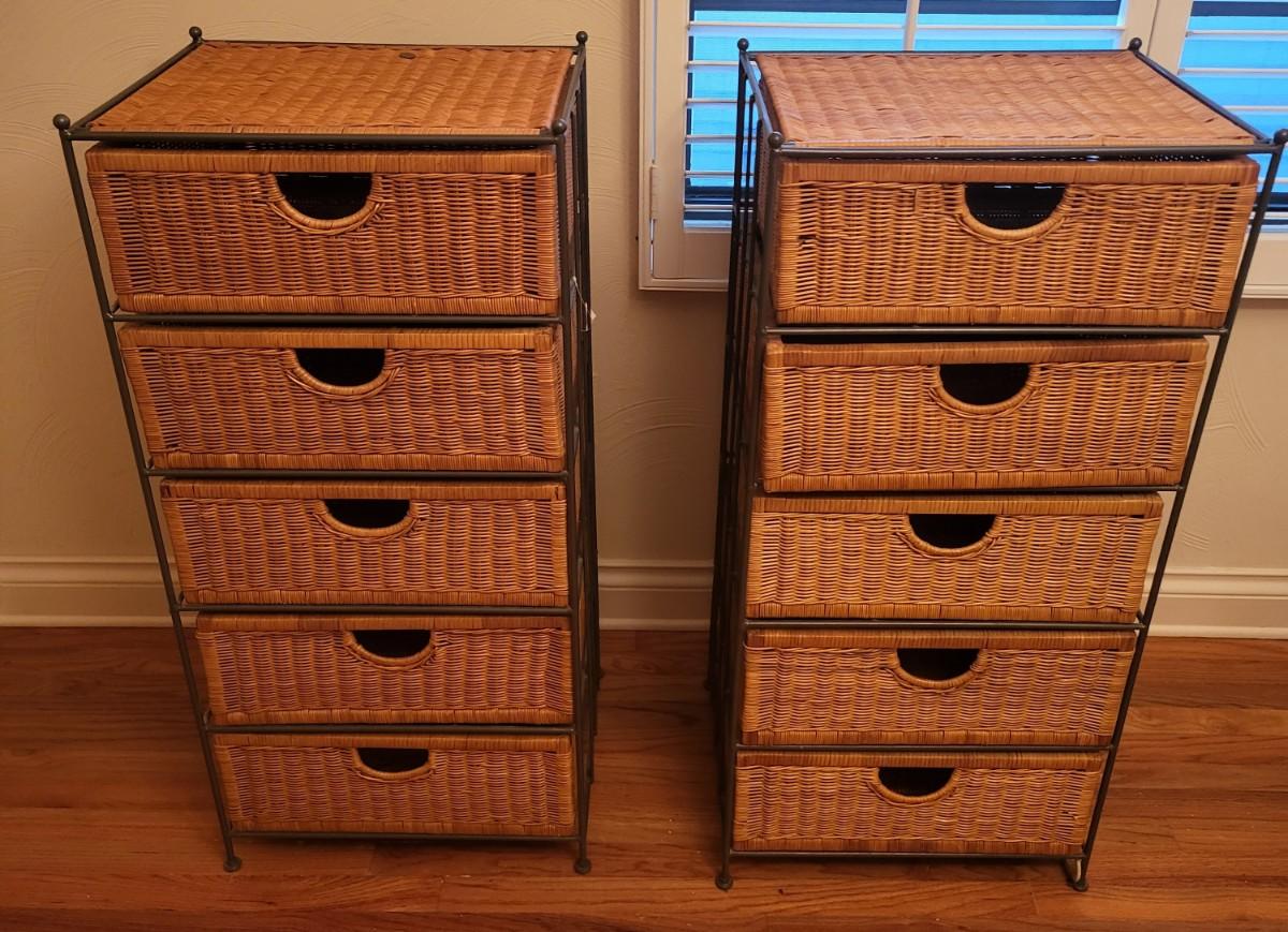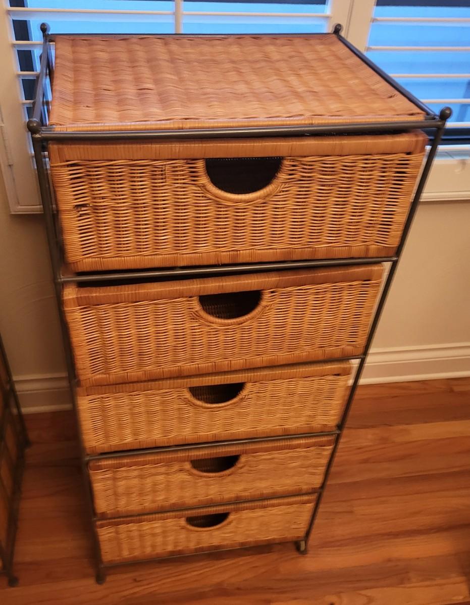 2 Metal Wicker 5 Drawer Storage Dresser