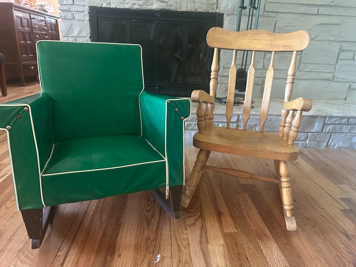 2 Midcentury Children's Rocking Chairs - Wood & Vinyl