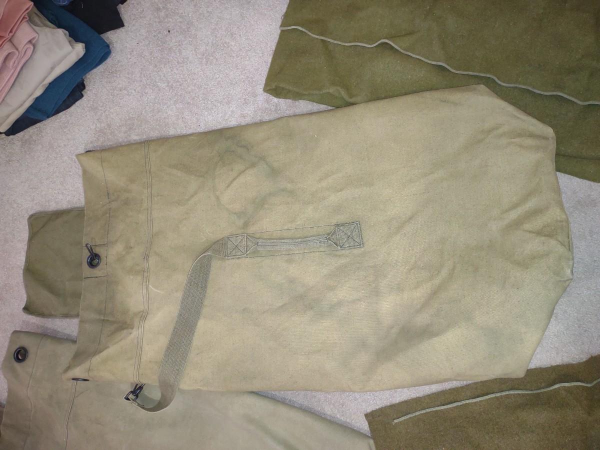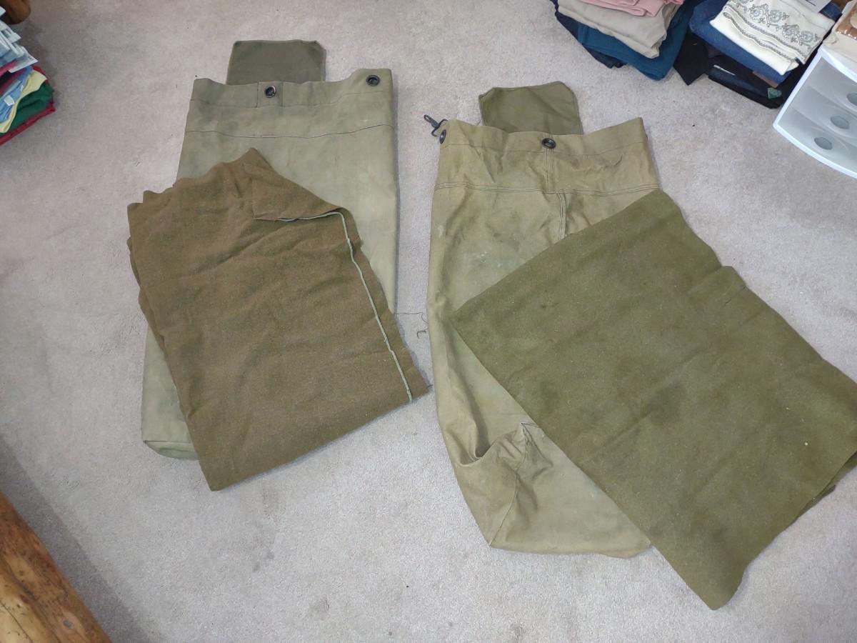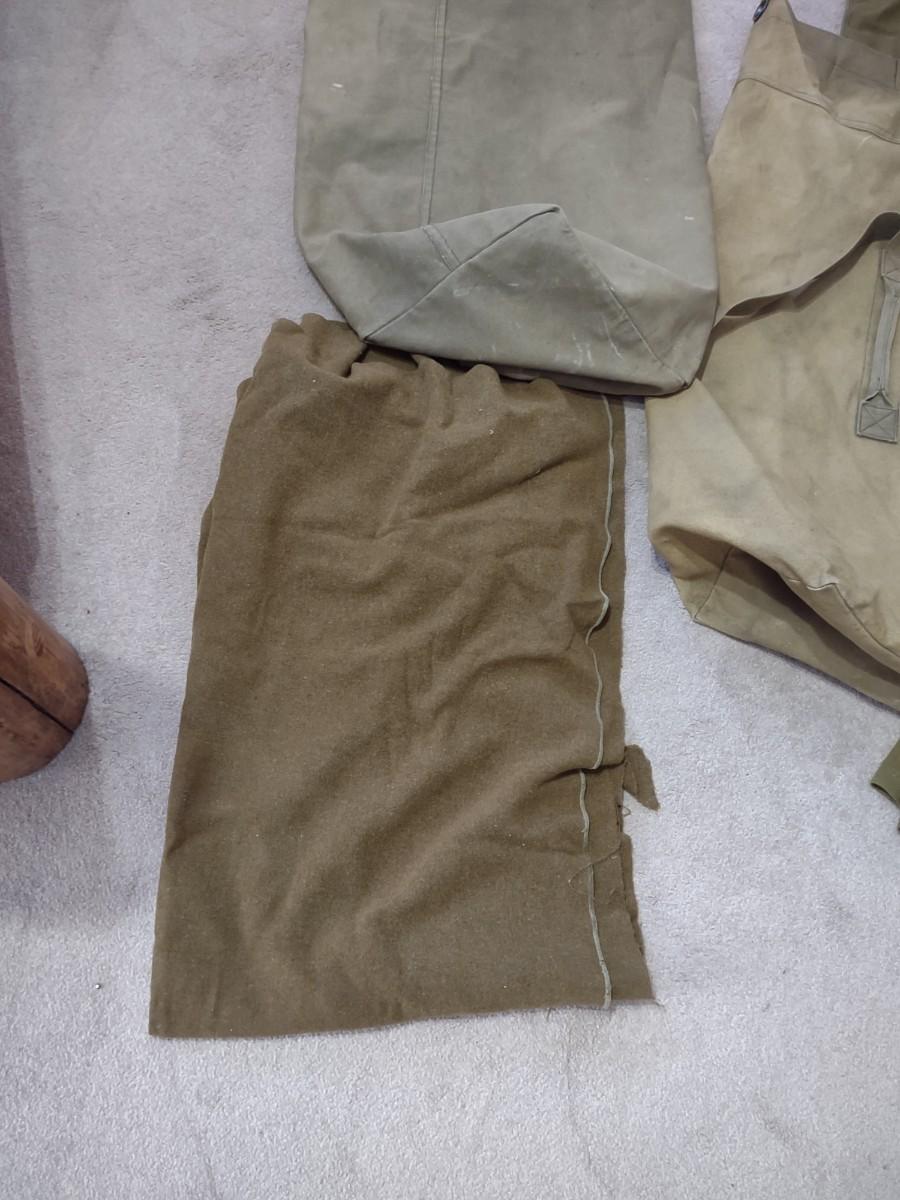 2 MILITARY WOOL BLANKETS AND CANVAS DUFFLE BAAGS