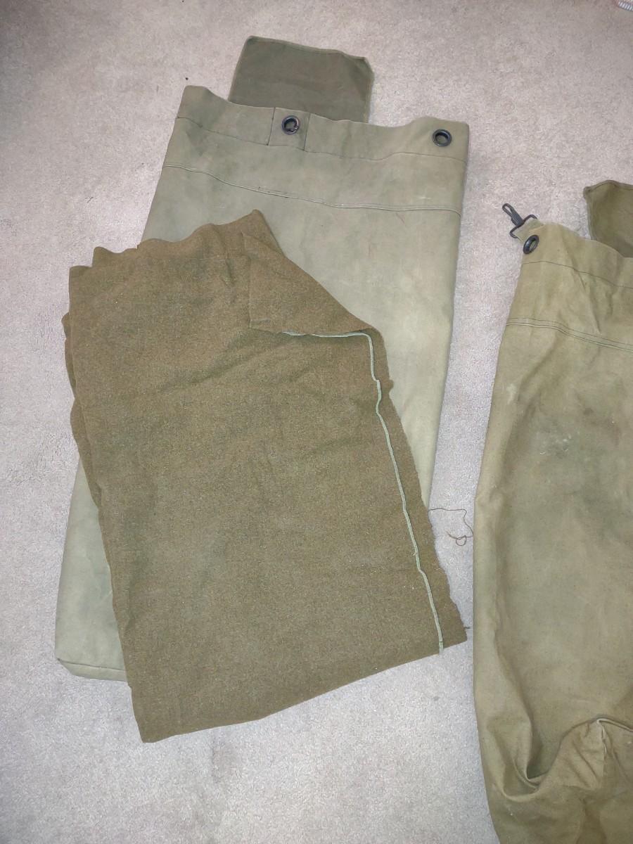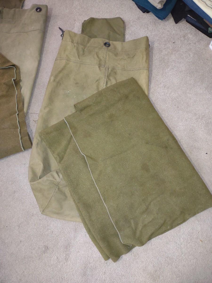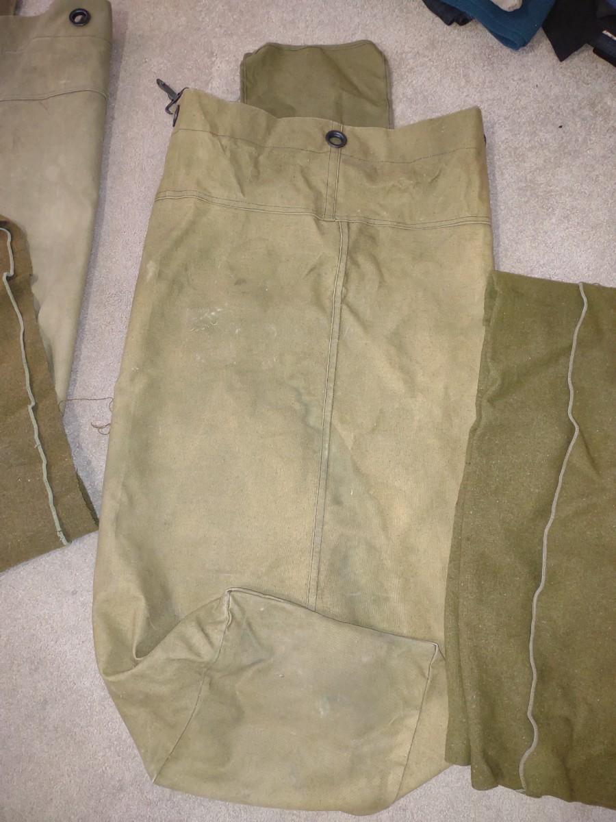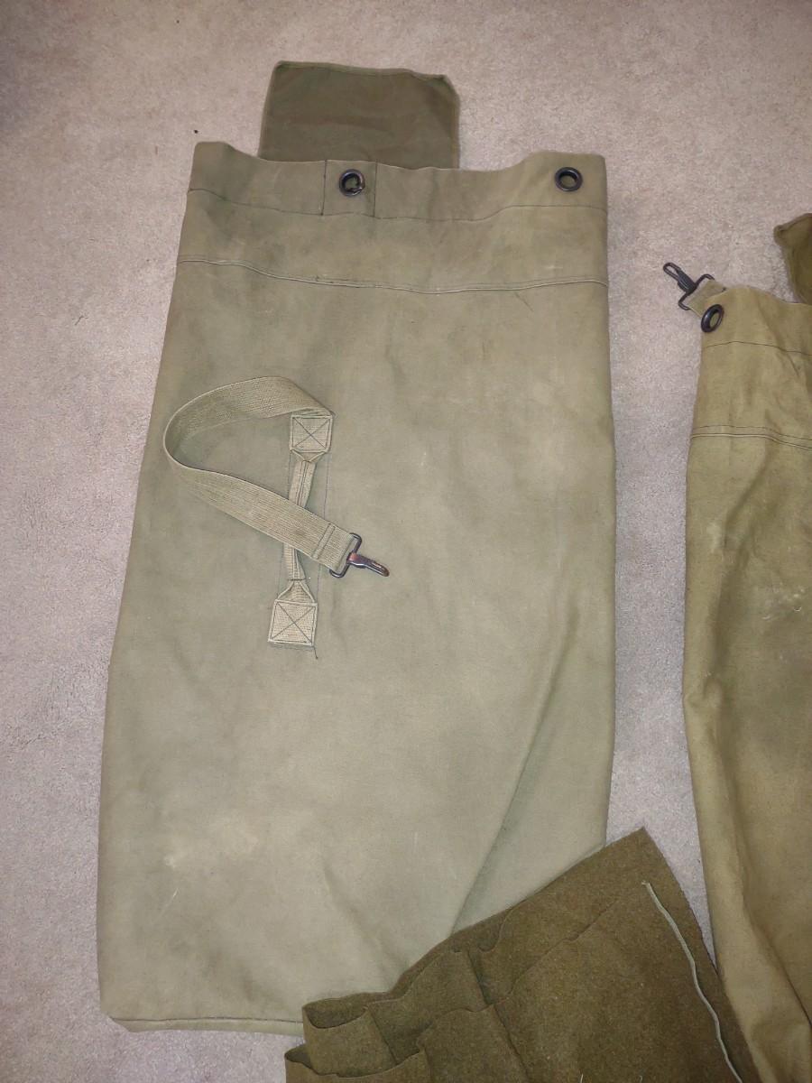 2 MILITARY WOOL BLANKETS AND CANVAS DUFFLE BAAGS