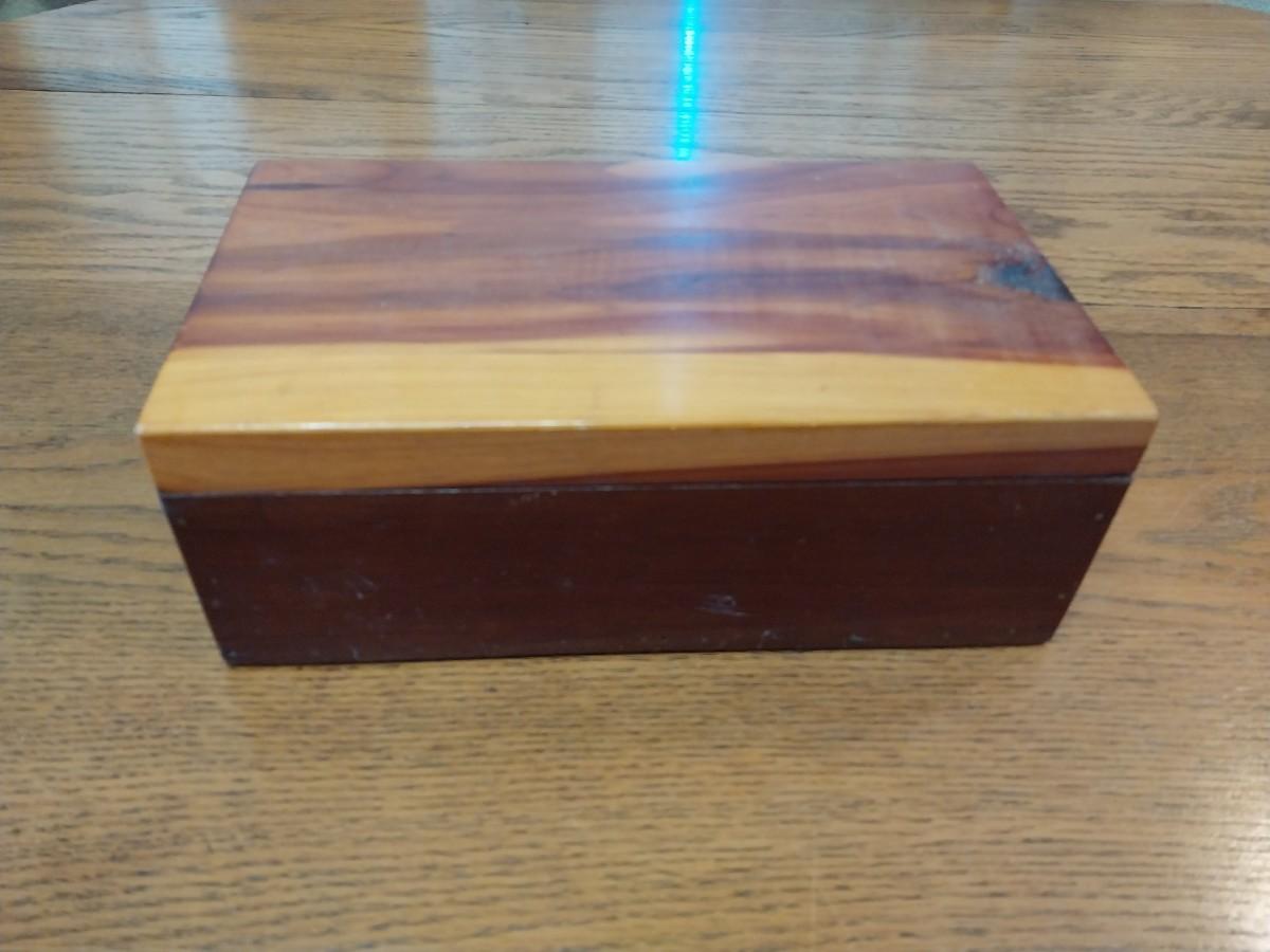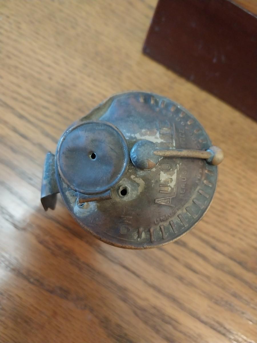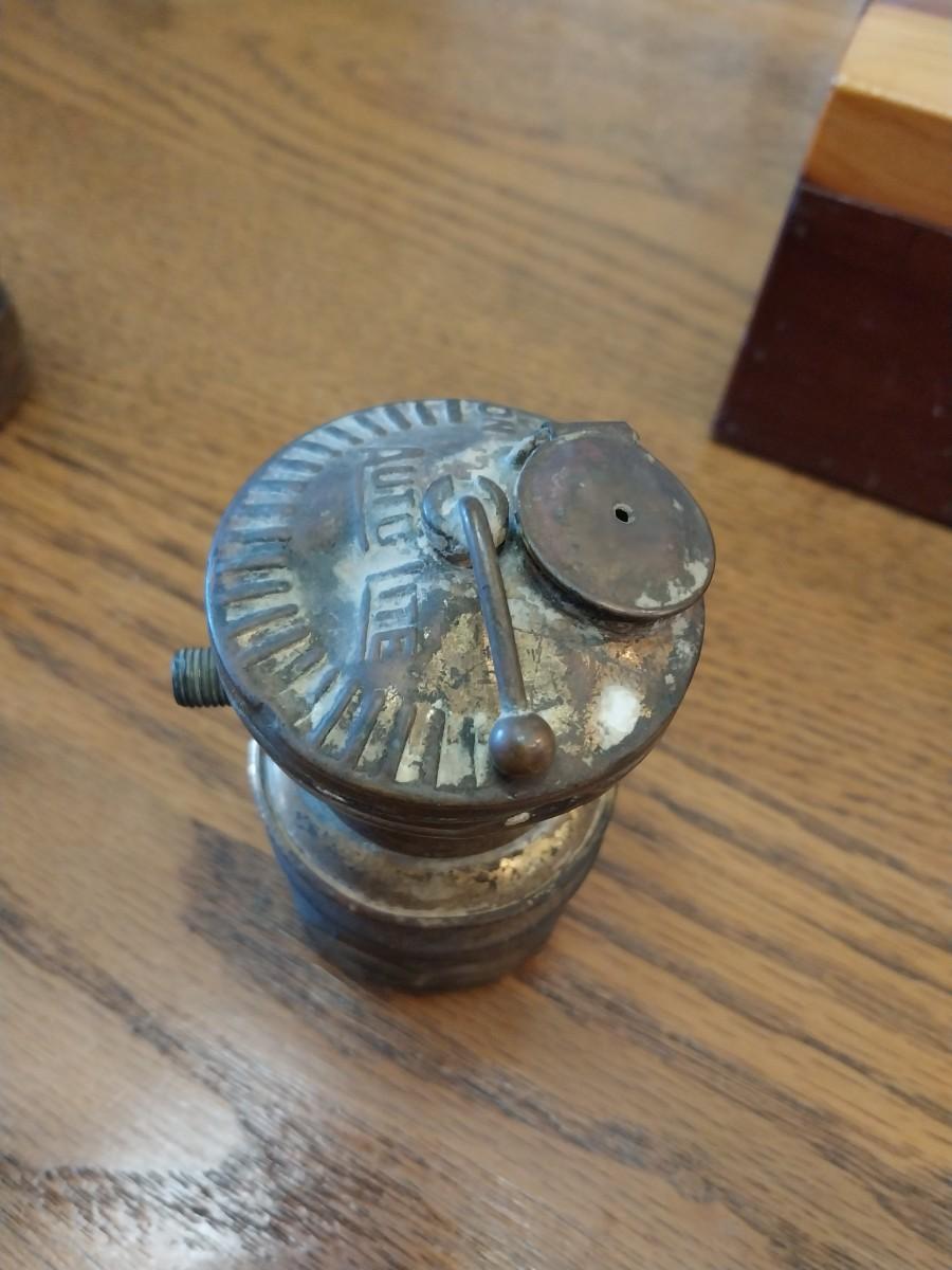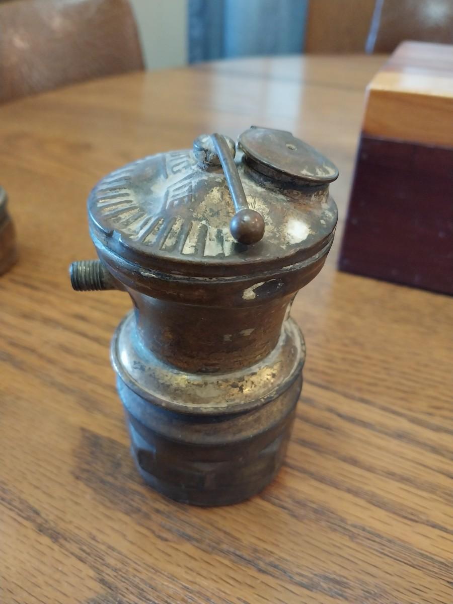 2 MINERS CARBIDE LAMPS AND A CEDAR BOX