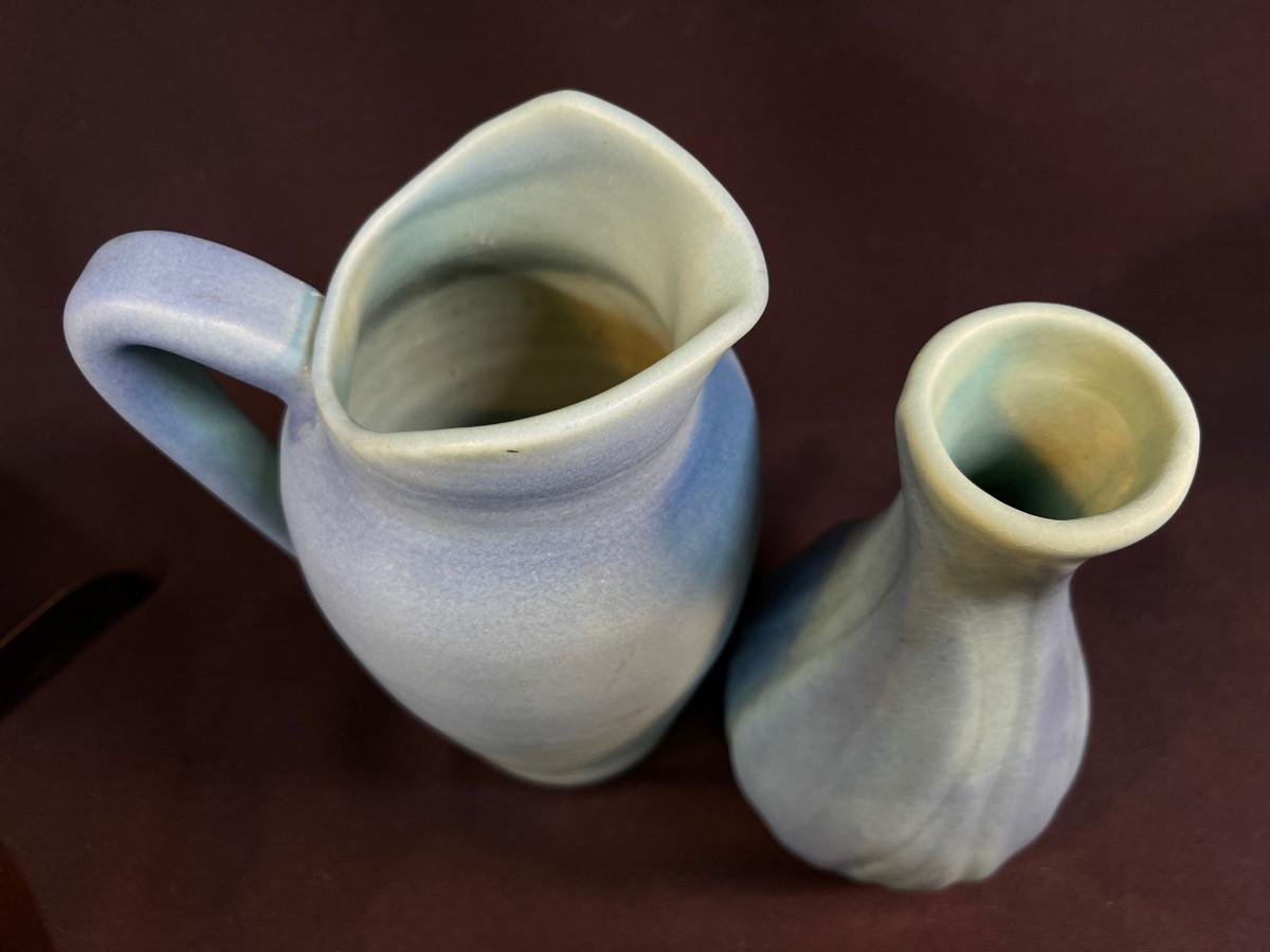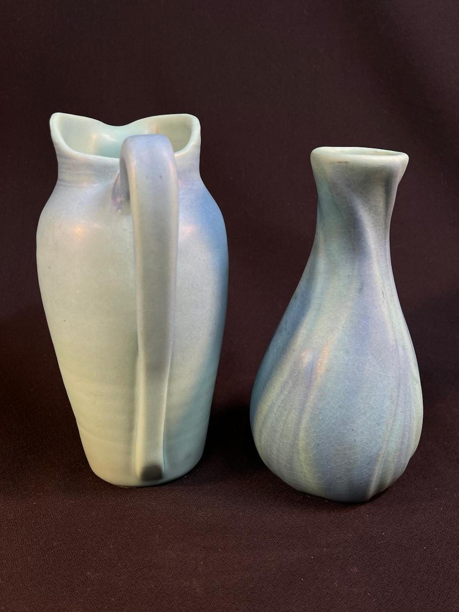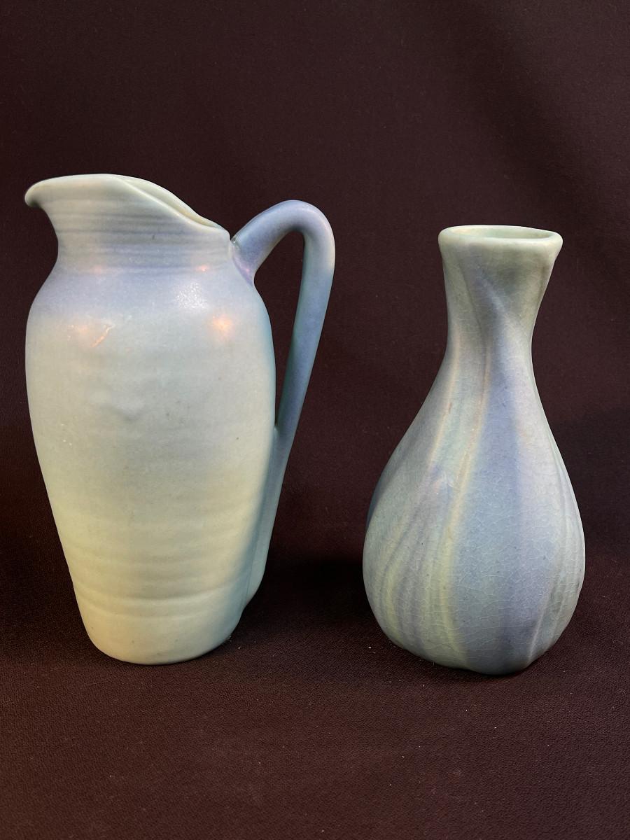 2 Ming Blue Van Briggle pieces Pitcher, Vase