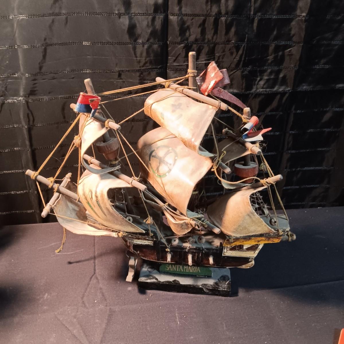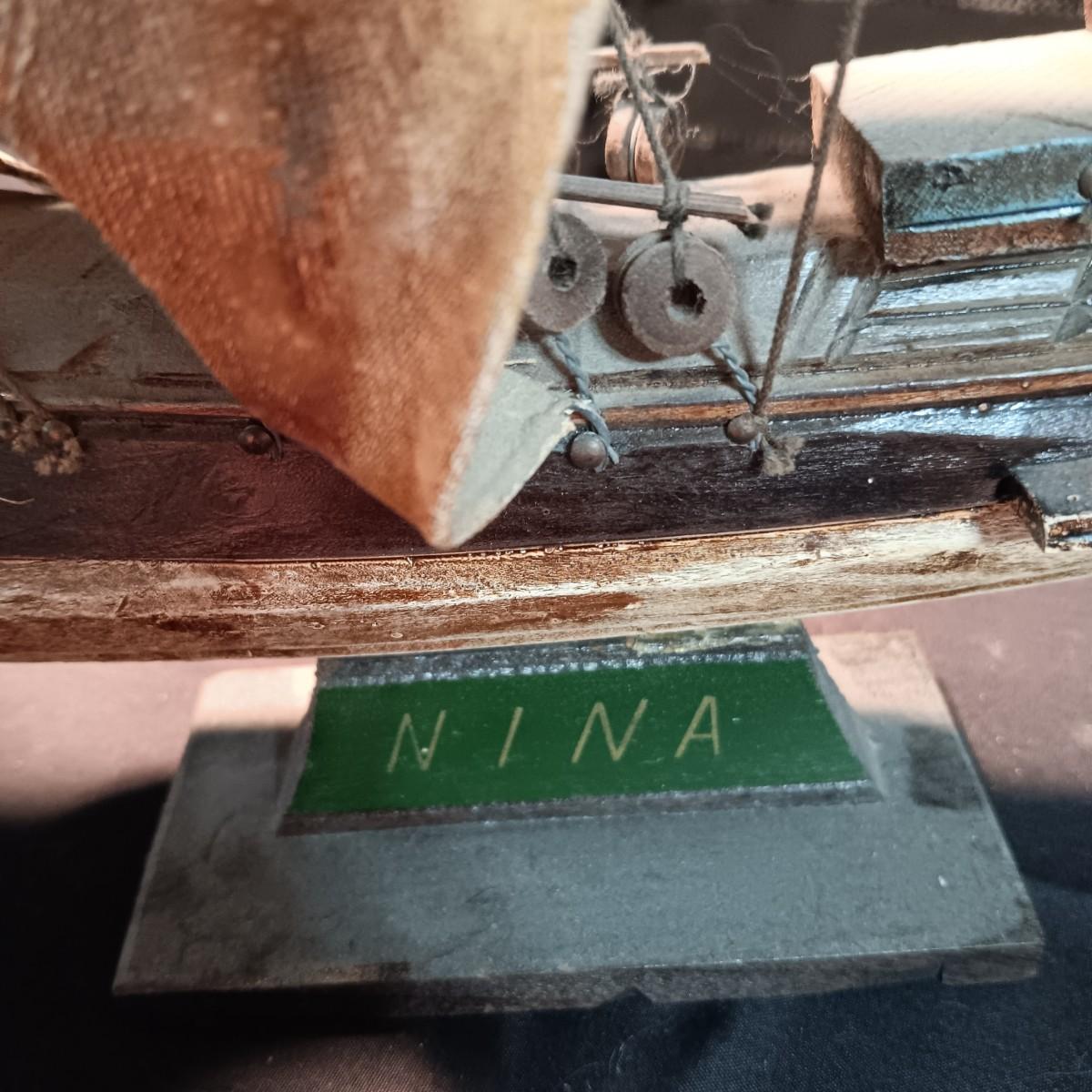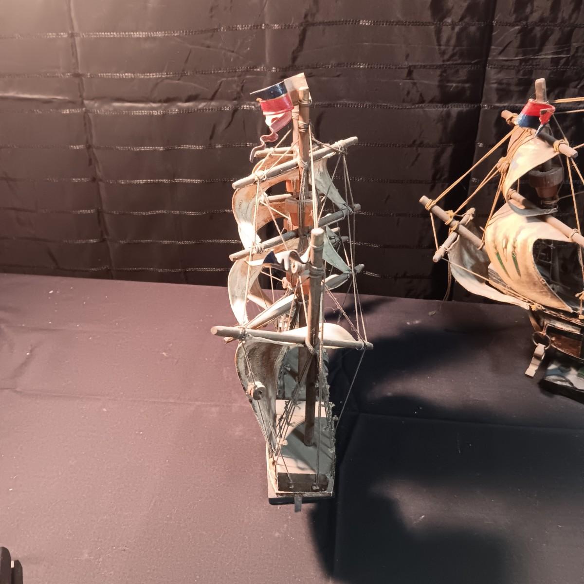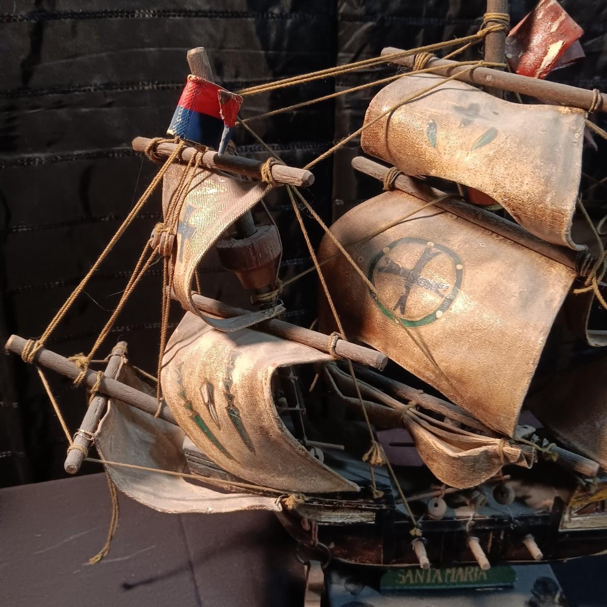 2 MODEL SHIPS "NINA AND SANTA MARIA", PLAYING CARDS, HINGED LID TIN AND A BOOK