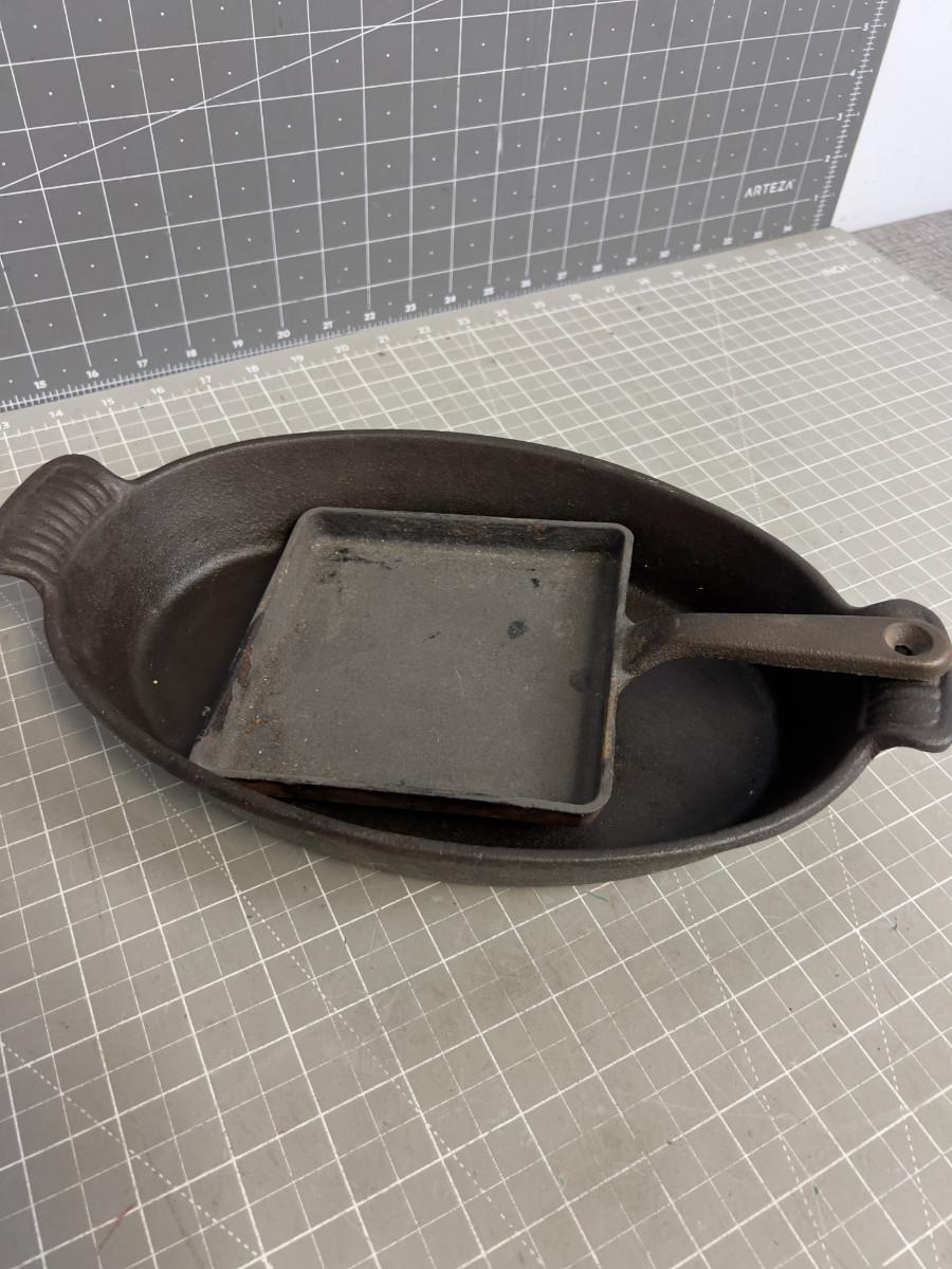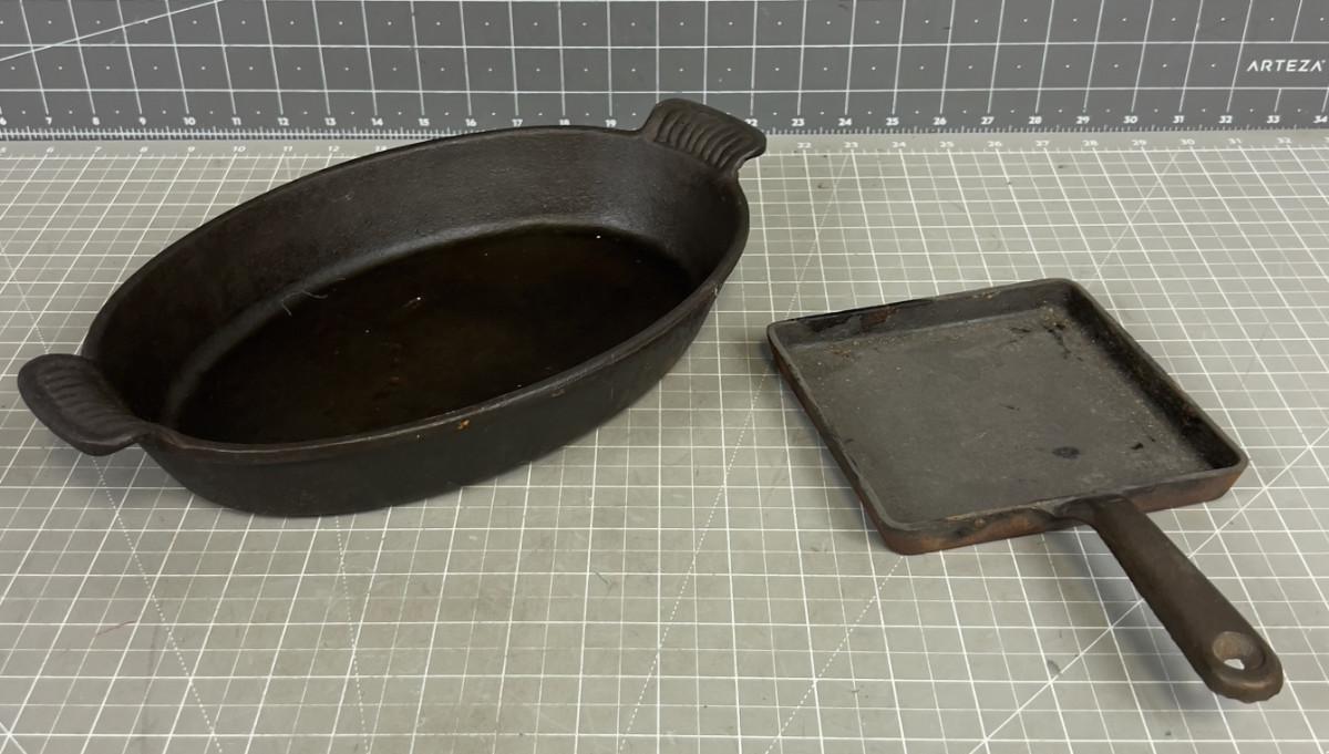 2 More Pieces of Cast Iron; Small Square Skillet and Baking Dish