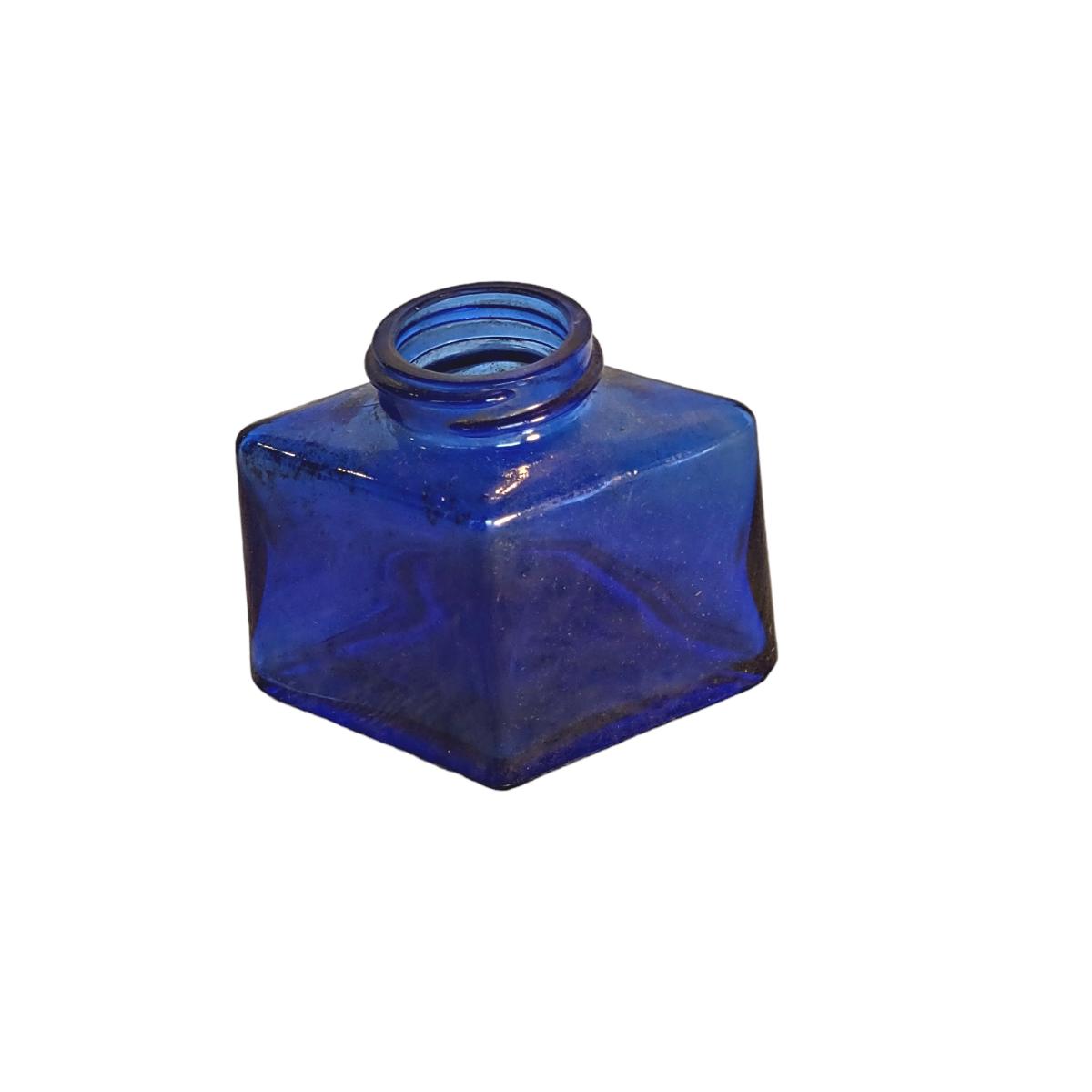 1. Vintage Cobalt Blue Glass Diamond Shaped Inkwell - 2.5"H x 3.5"W - Marked "PARKER MADE IN U.S.A. 2 FL. OZ. 59CC"