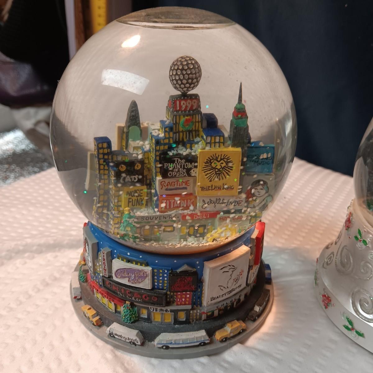 2 MUSICAL SNOW GLOBES, NEW YORK TIME SQUARE AND BARBIE