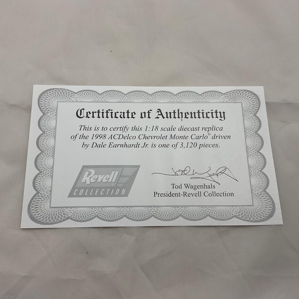 One NASCAR die cast 1:18 scale 1998 AcDelco Chevrolet Monte Carlo figure. Dale Earnhardt Jr. Comes with a Certificate of Authenticity. Please see photos for details and condition. ::: Shipping is available on this lot. If you require shipping you must let us know at the close of the auction. We will coordinate with you after the item has been won. Shipping fees will include insurance up to or exceeding the value of all items being mailed. If you have any questions regarding this lot please contact the auctioneer either via this website, by direct email or by phone. PICK UP TIMES and other important information can be found in the TERMS and DESCRIPTION of the auction. Please take a look for pertinent information. Thanks!