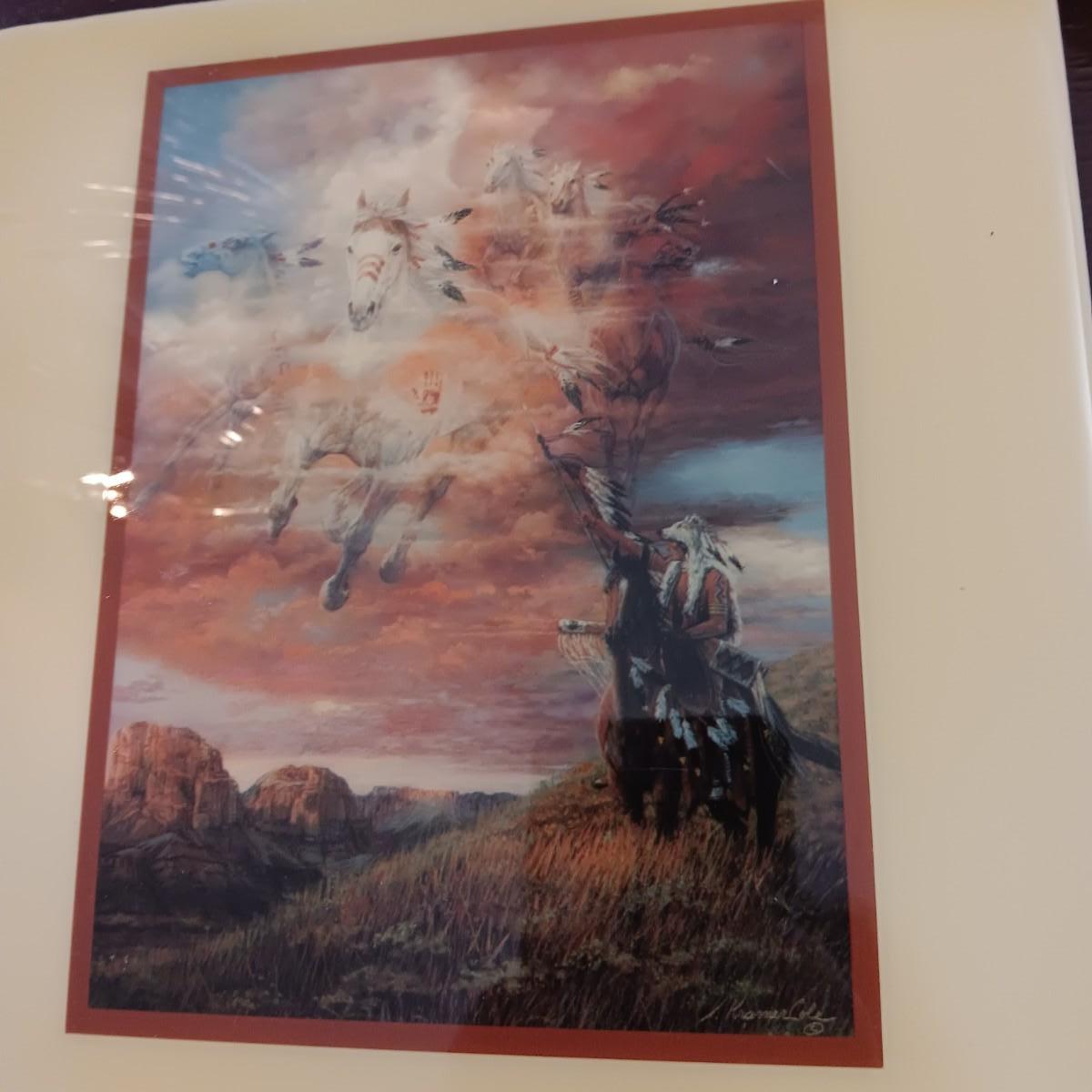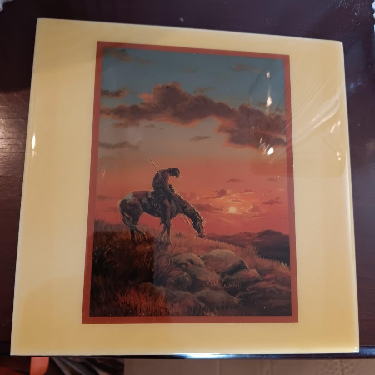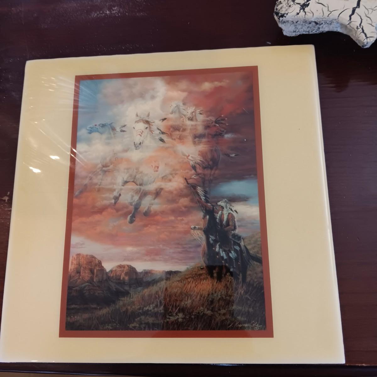2 NATIVE AMERICAN THEMED TILE WALL HANGINGS, GLASS VASE, MARBLE BOOKEND AND WALL HUNG BIRDS