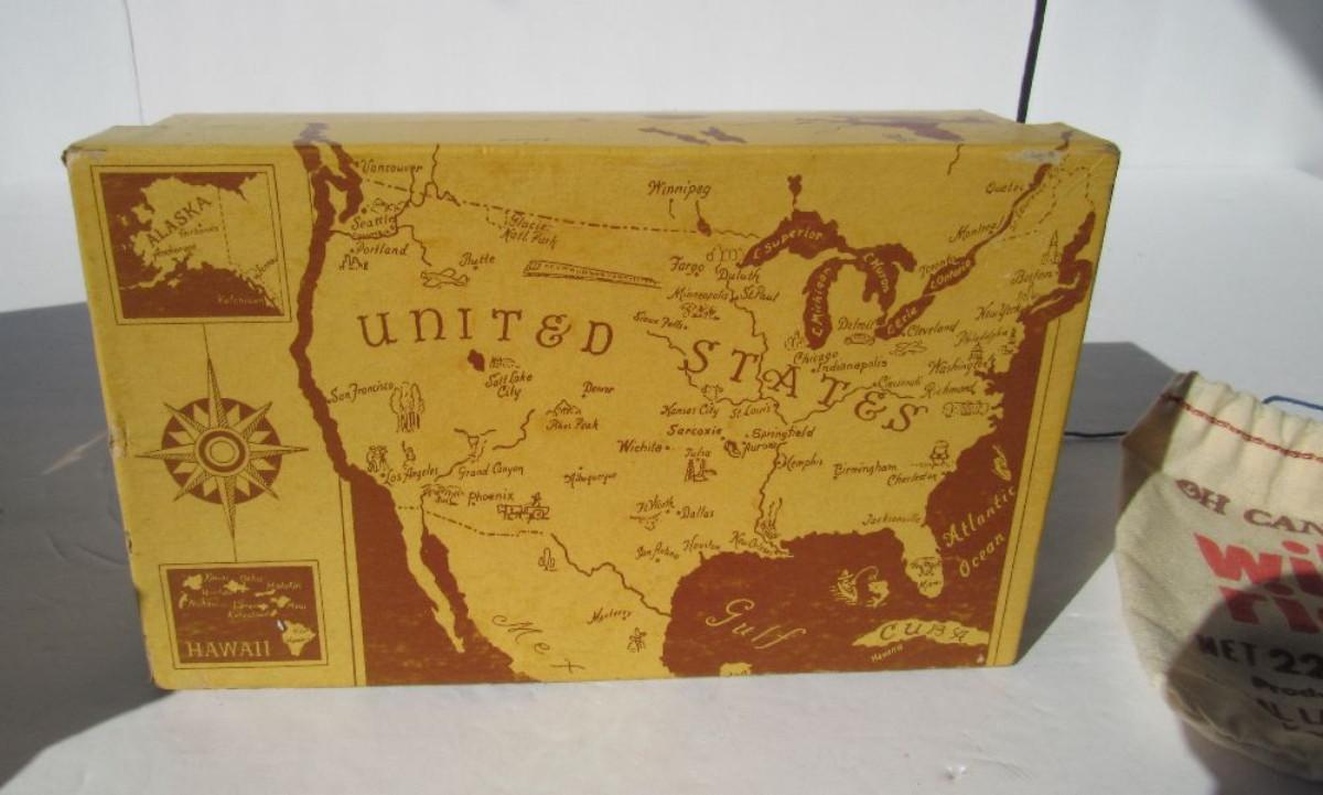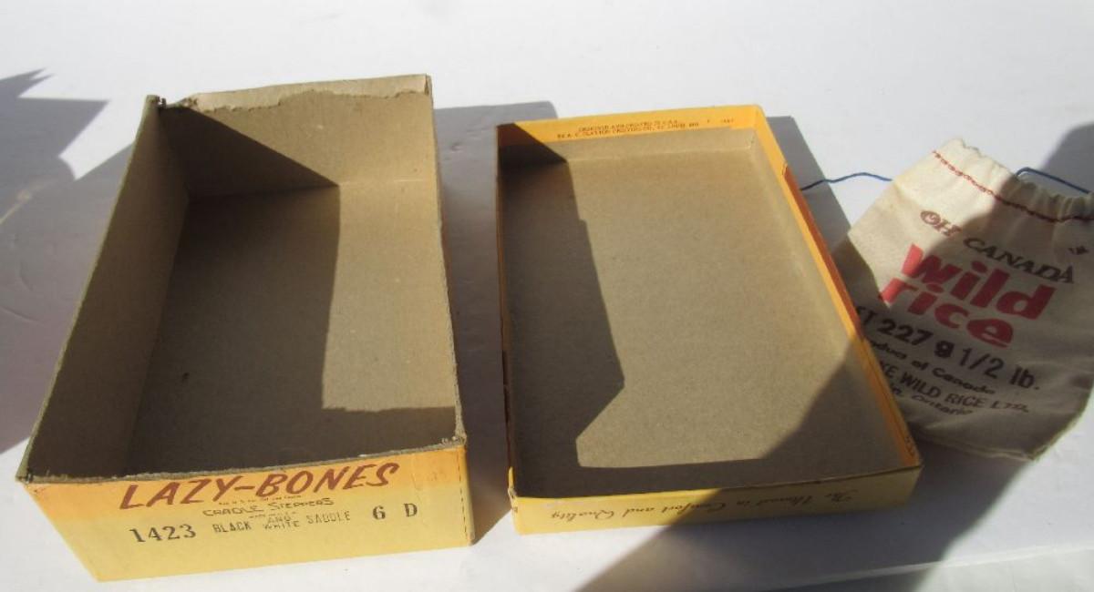 2 Neat Advertising Items: Lazy Bones Box With US Map on Top and Canada Wild Rice Bag