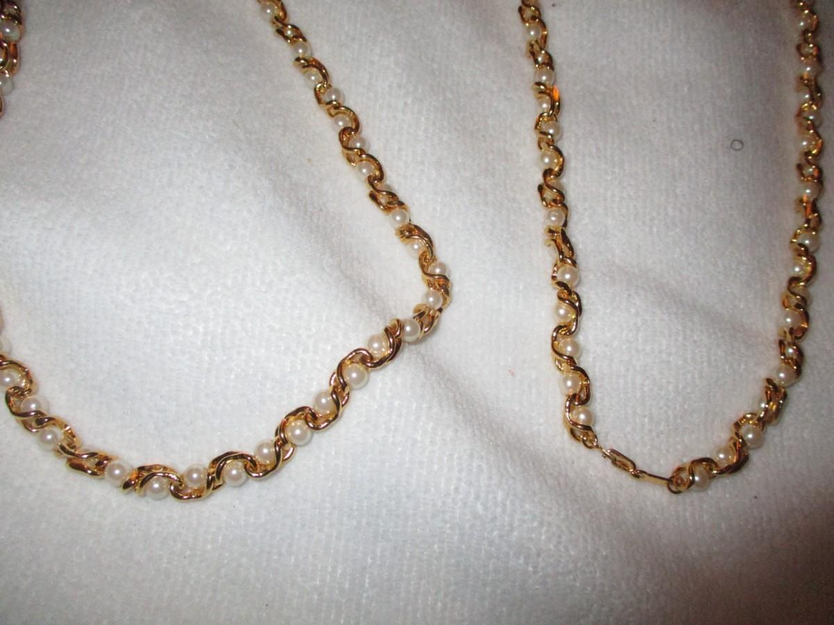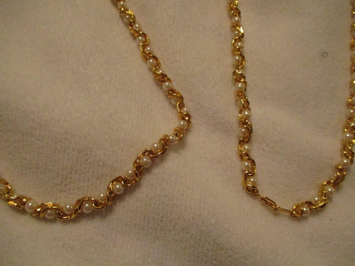 Faux pearl and gold necklaces