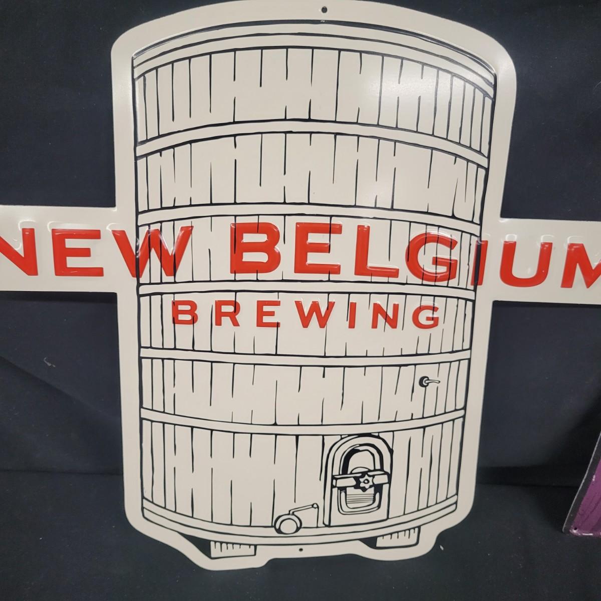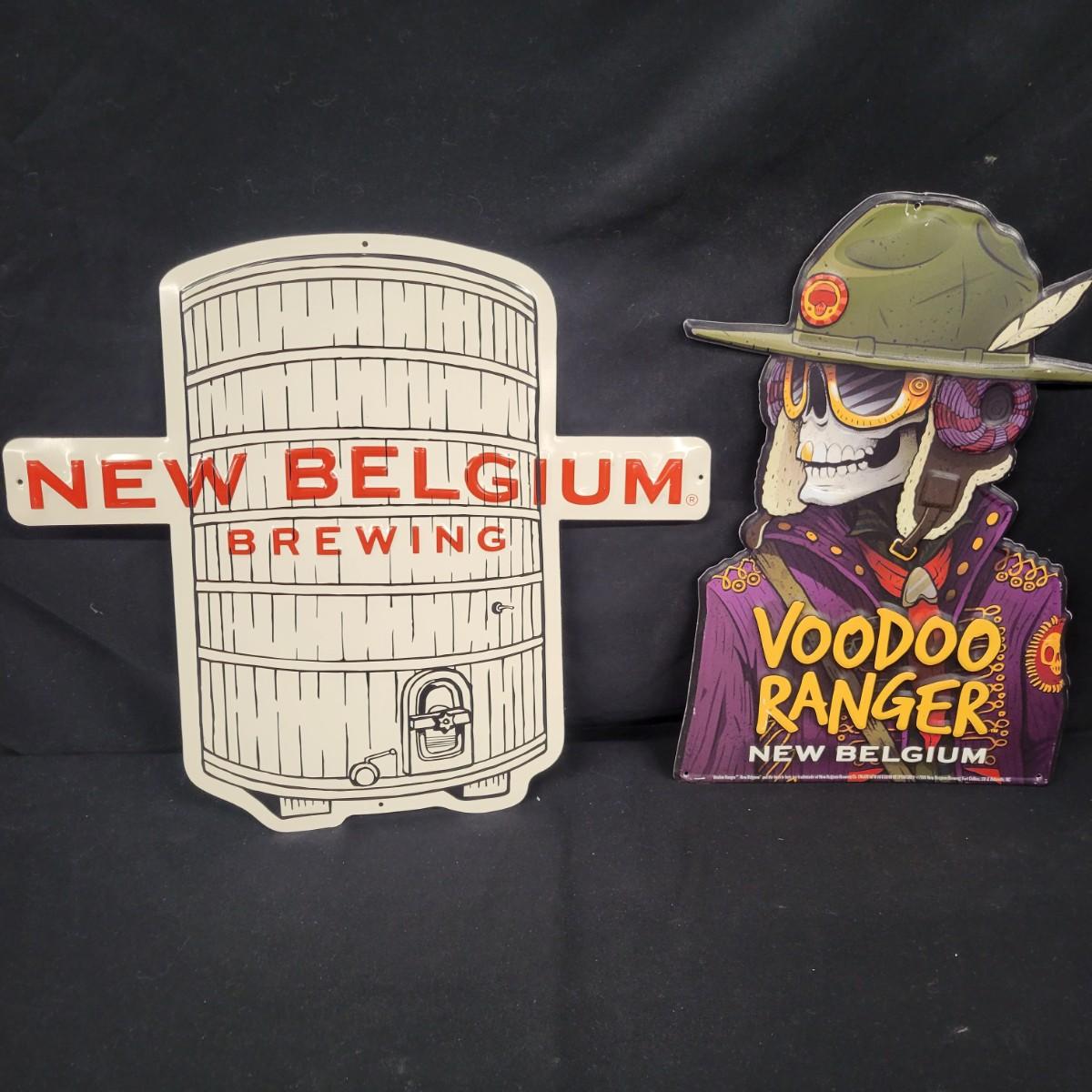2 metal New Belgium Brewing signs in good condition. Voodoo Ranger sign does show some minimal damage, see attached pictures. Brewing barrel sign is in great condition with a few small scratches. Barrel sign measures approximately 18" x 16" Shipping available