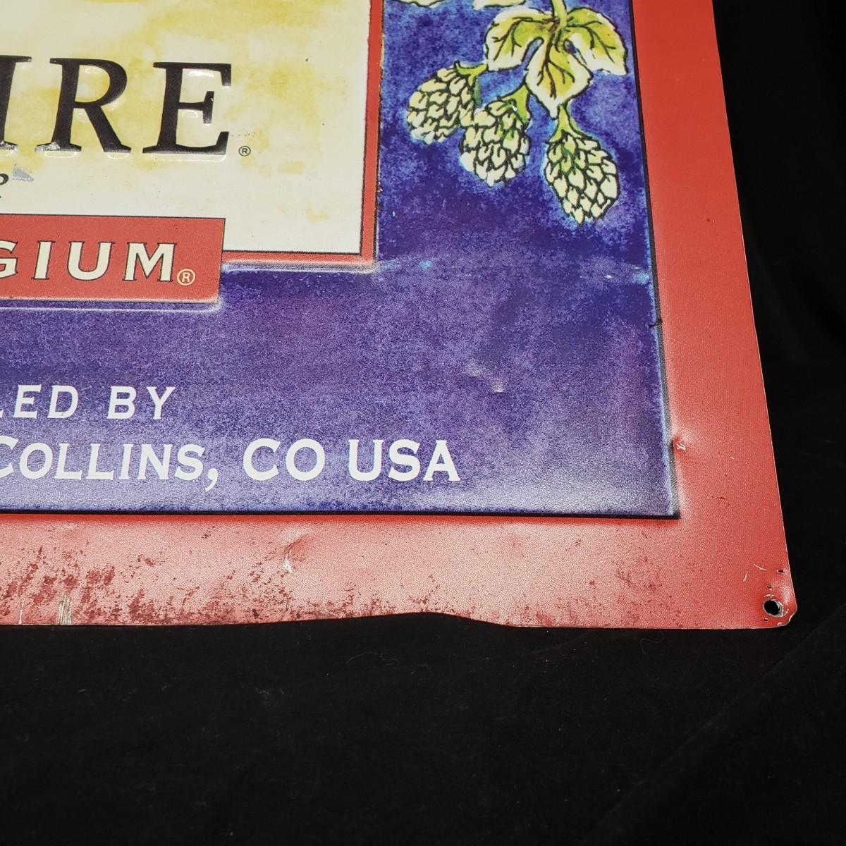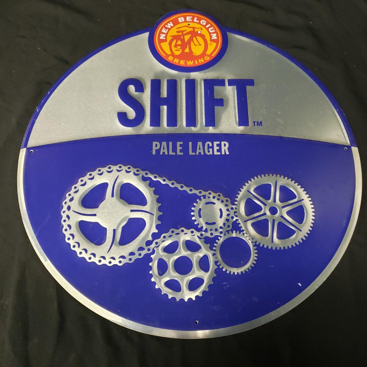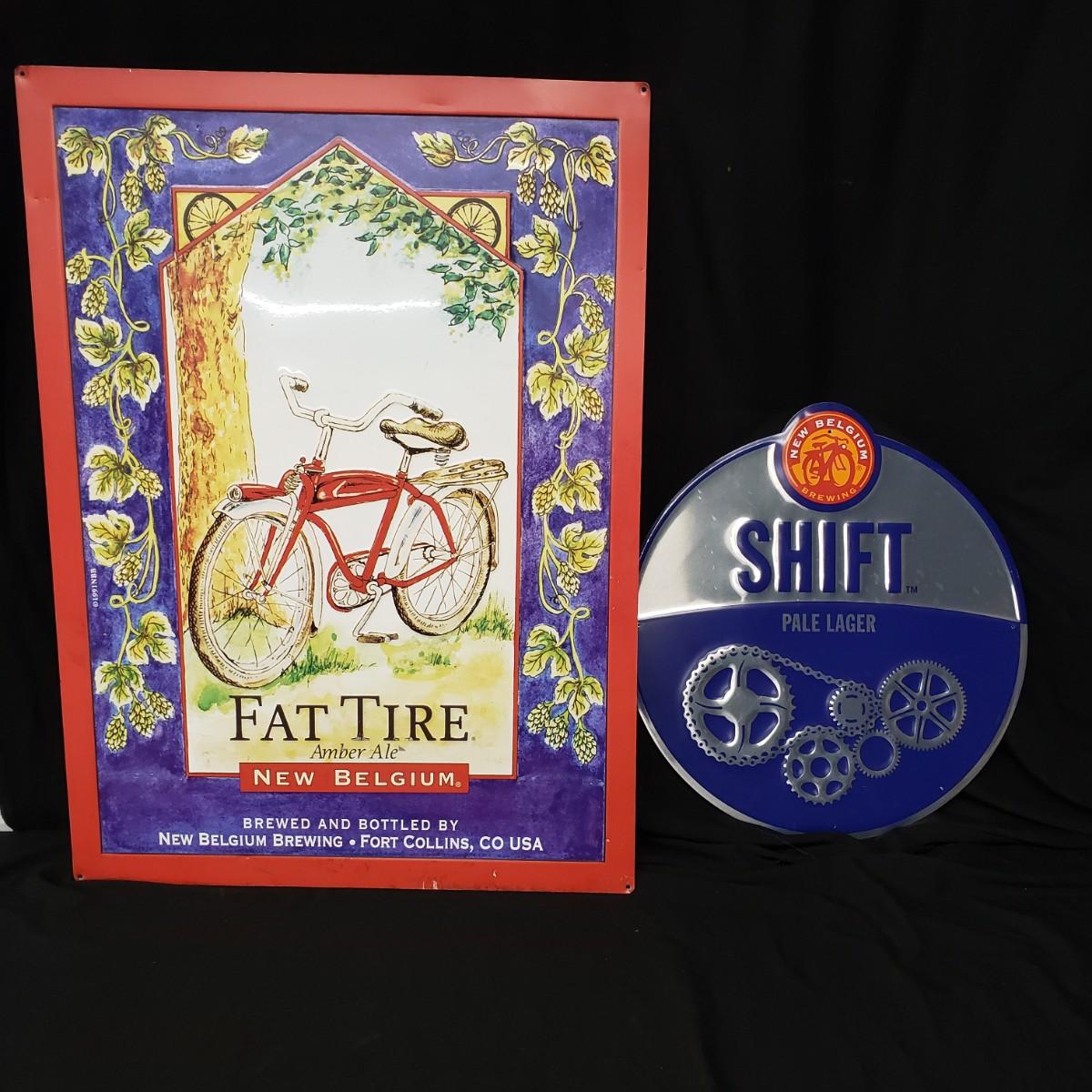 2 New Belgium Metal Signs, 1 Fat Tire rectangular and 1 Shift circular signs. The Fat Tire sign measures 24"x32". The Shift sign measures 19"x20". The Fat Tire sign has some wear around the red edges. See pictures for details. Shipping available.
