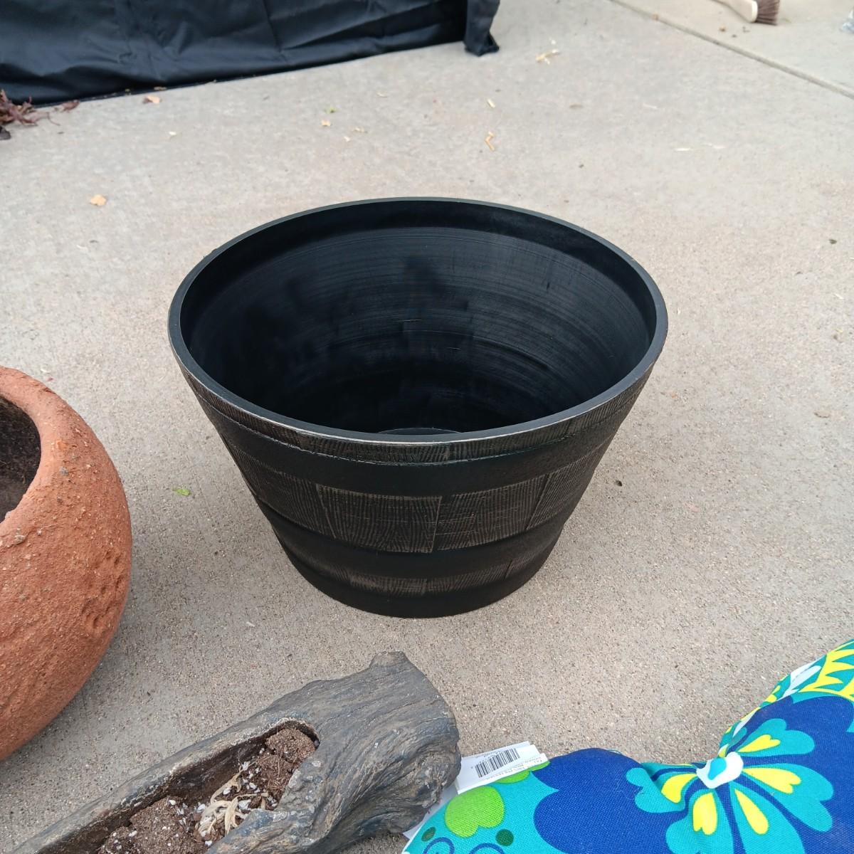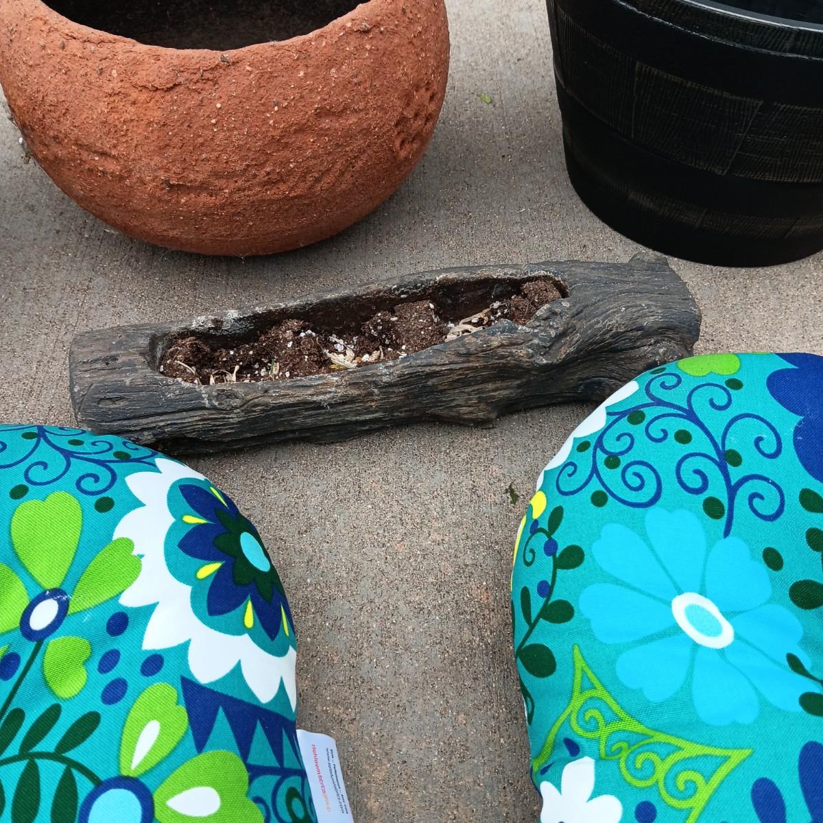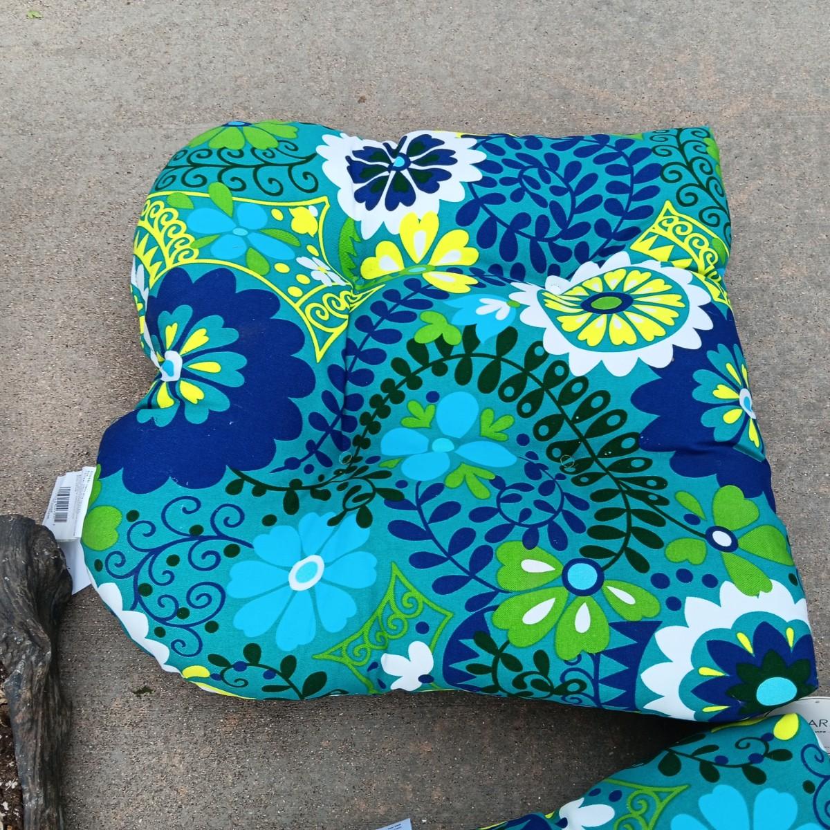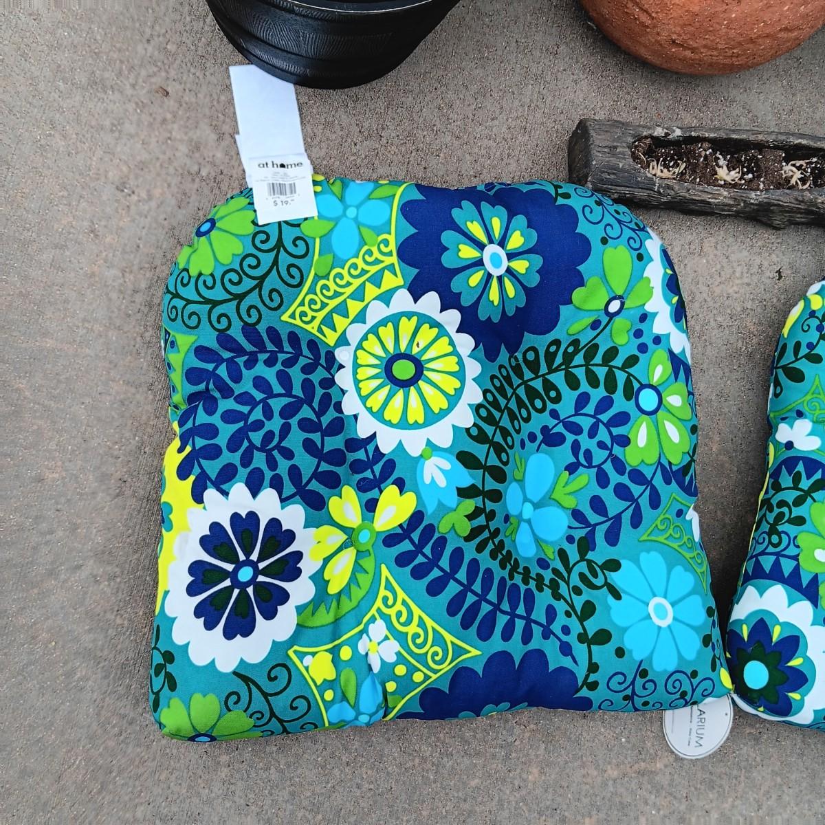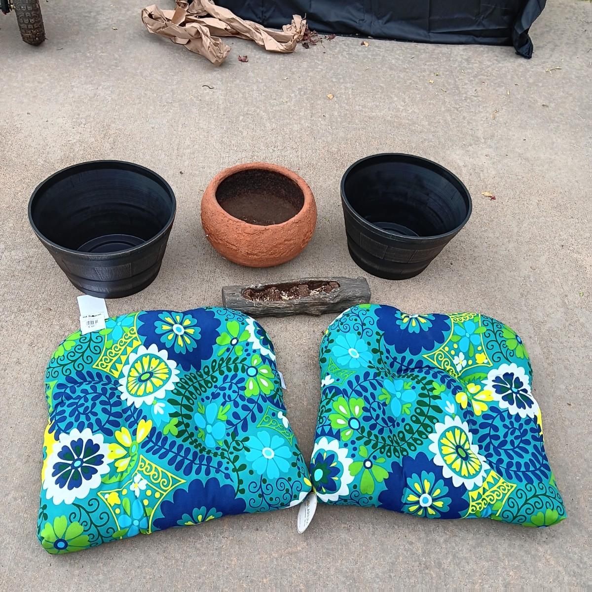 2 NEW CHAIR CUSHIONS AND SOME FLOWER POTS