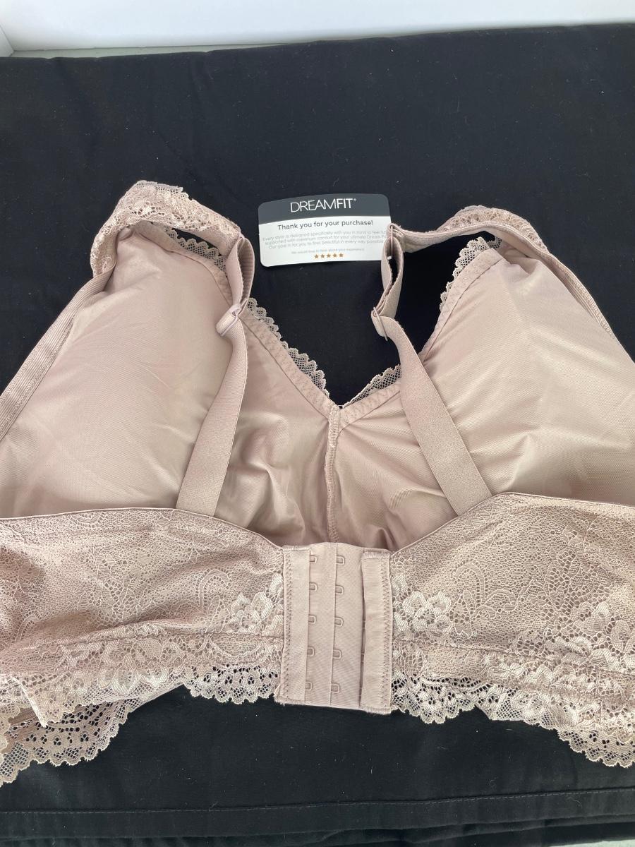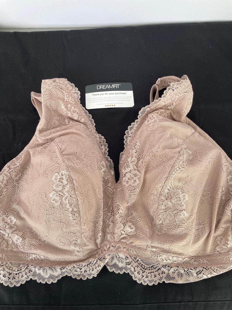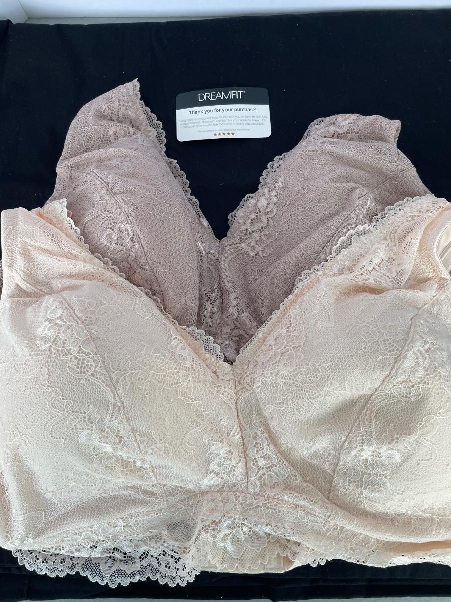 Both new in bags. Wire-free, removable soft cups, stretch lace and adjustable straps. Darker Suntan color (not Shell) and Pebble Grey colors.