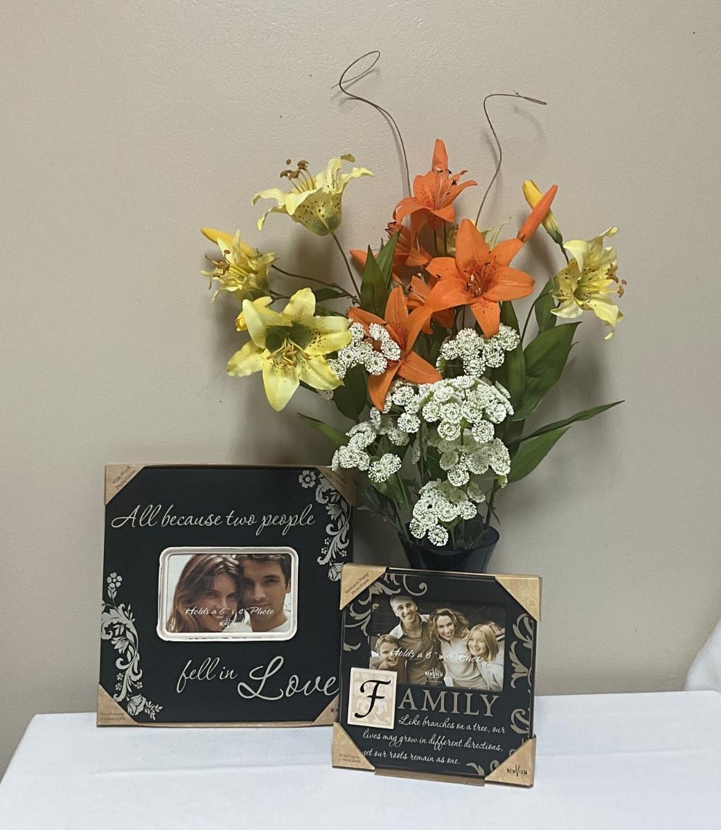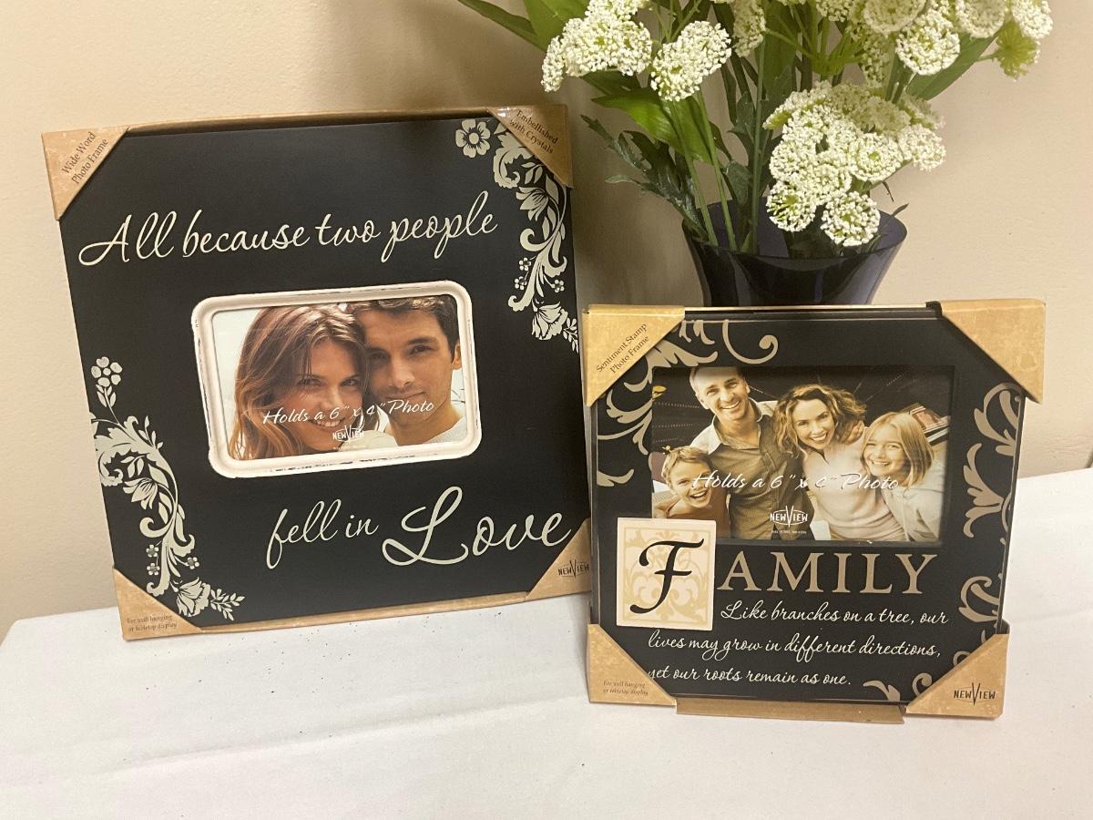 2 New Family Theme Frames, Blue Vase with colorful flowers