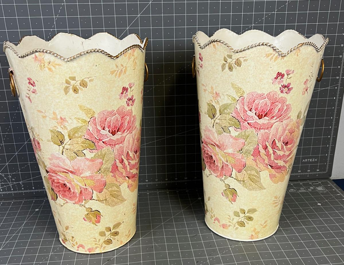 2 NEW Metal Floral Buckets, Vases, Garbage Can