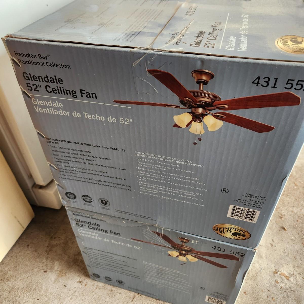 2 New Sealed Hampton Bay Glendale 52" Ceiling Fan
