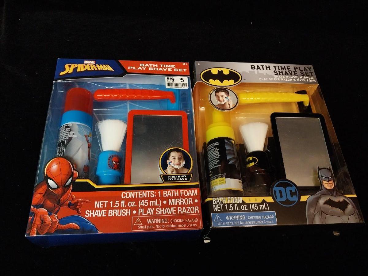 2 NEW SPIDER-MAN & BATMAN BATH TIME PLAY SHAVE SETS