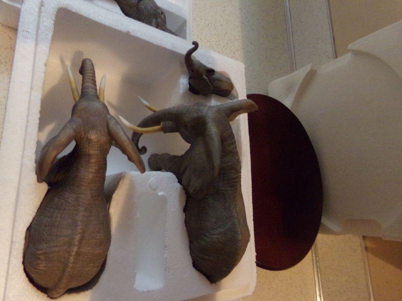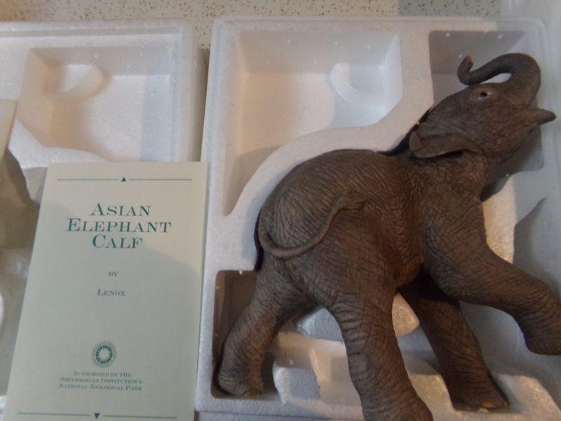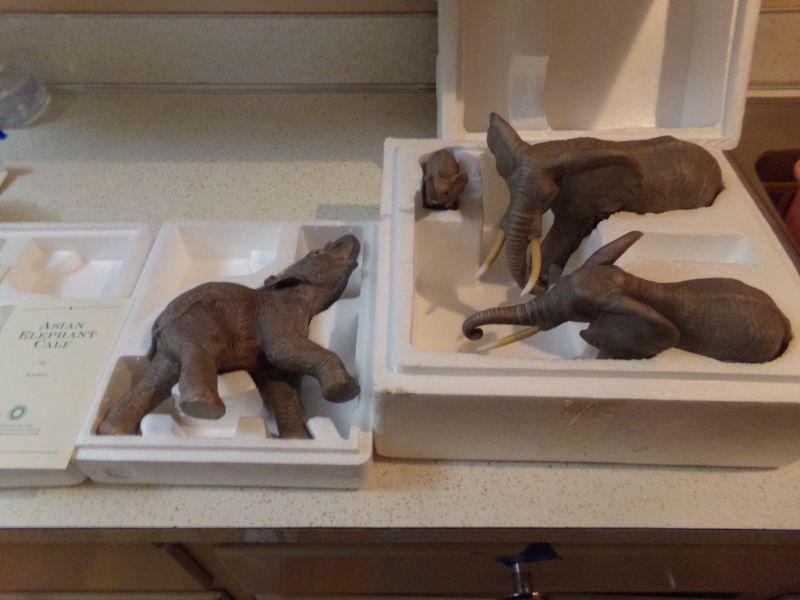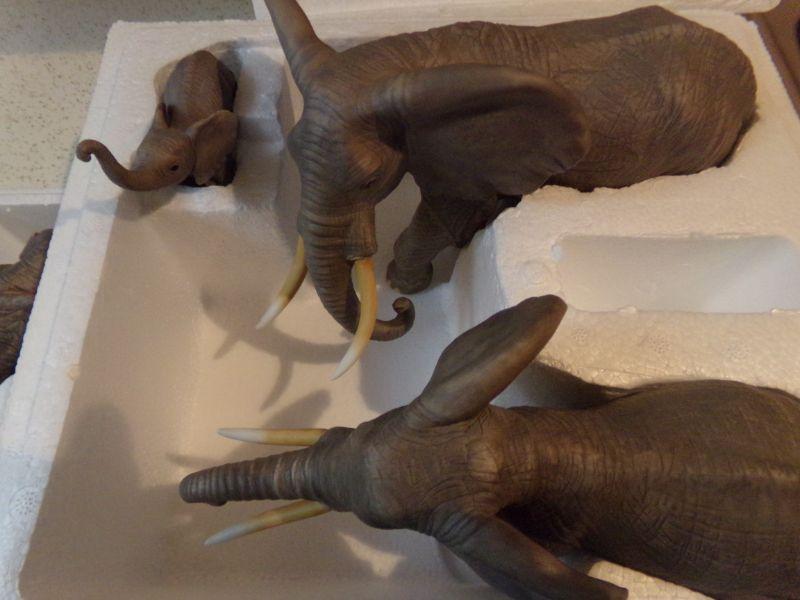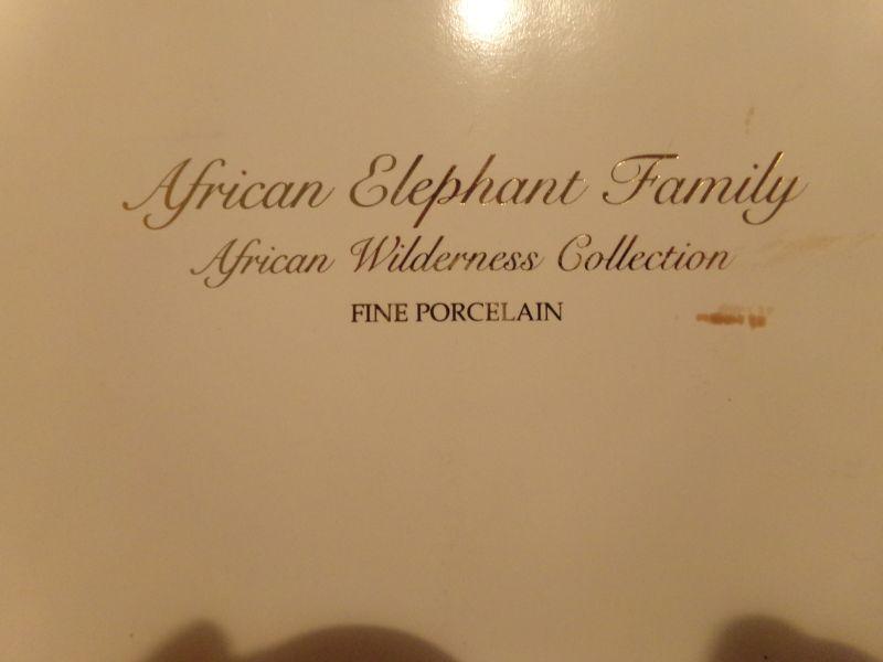 NIB COLLECTABLE PORCELAIN ELEPHANTS FROM LENOX, 1 IS OF THE ASIAN ELEPHANT AND THE OTHER THE AFRICAN ELEPHANT FAMILY.