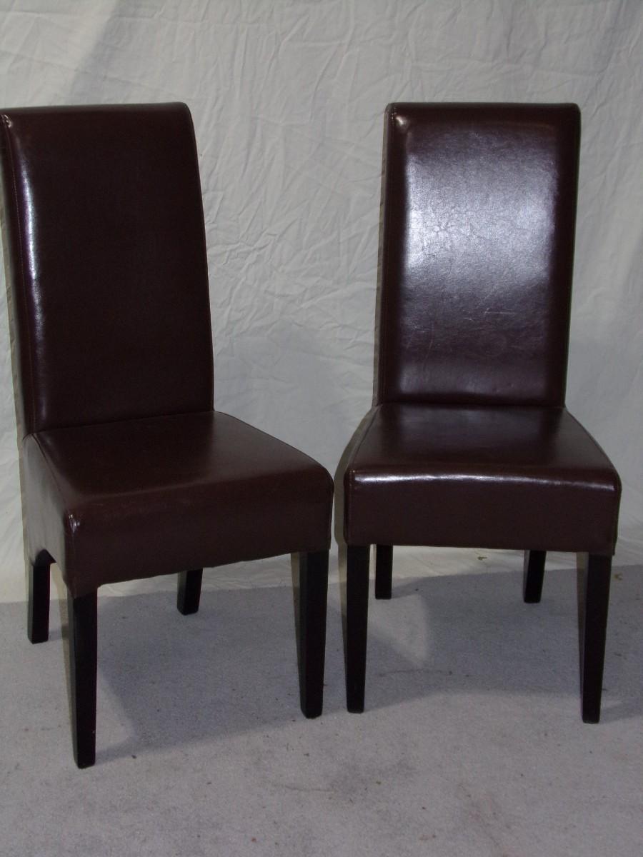 2 nice chairs, brown vinyl (faux smooth leather). Sturdy wooden frames.
