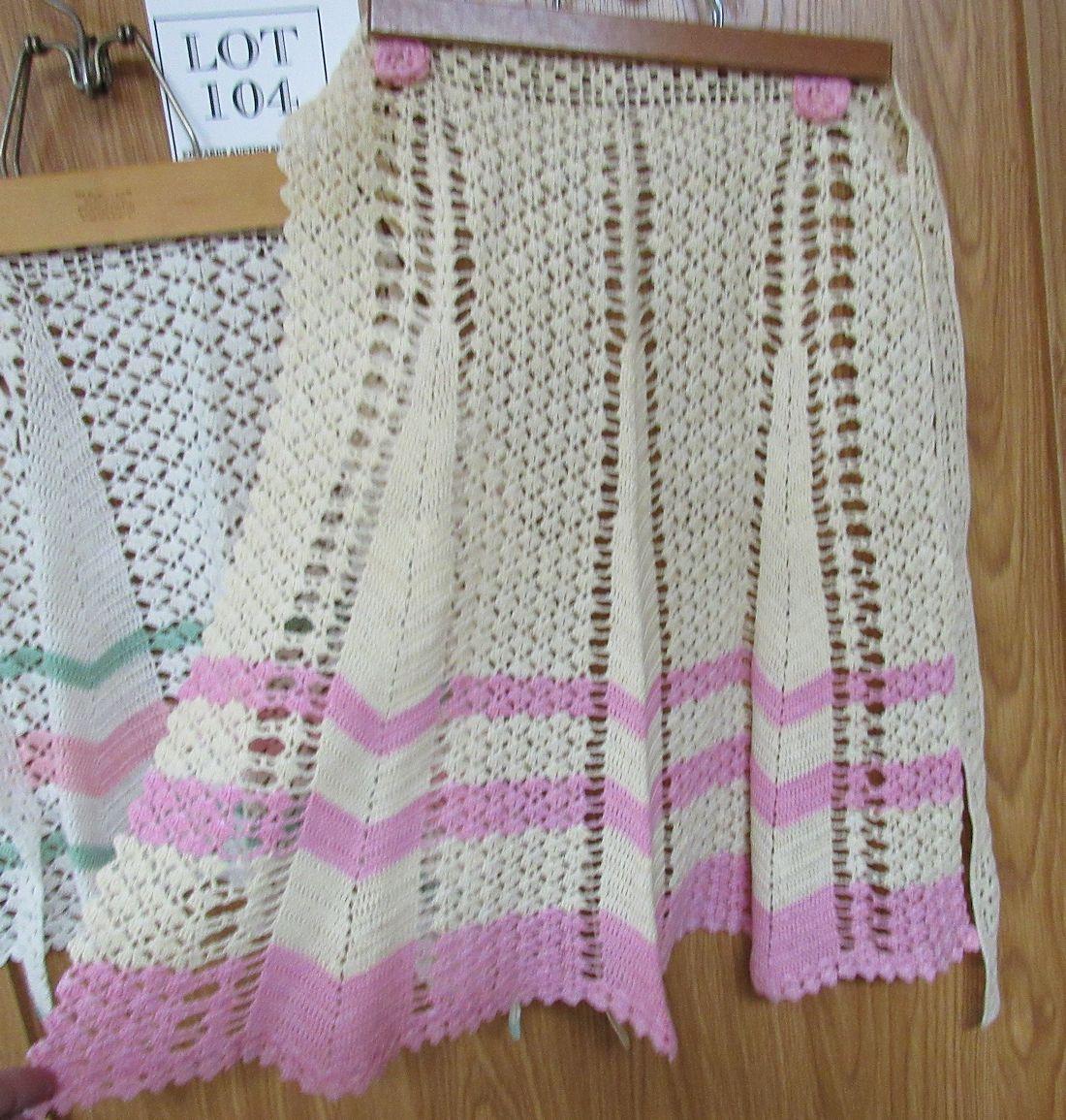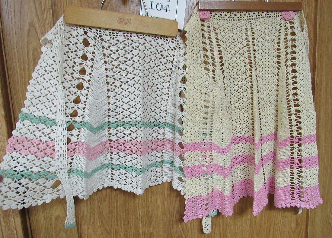 Stain on one tie on one apron, otherwise very nice condition. Pink one has rosettes. Shipping is available at shipping cost plus $5.00 handling fee on up to 6 lots, $10.00 handling fee on 7 or more lots or two boxes. $15.00 handling fee on 3 boxes. Helps cover shipping materials and labor cost.