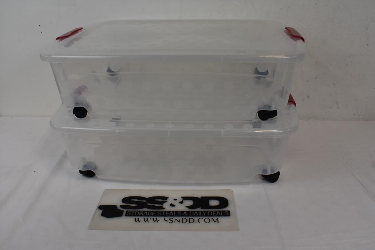 2 NO!Break 36 Qt Locking Lid Under Bed Plastic Storage (Lids are cracked)