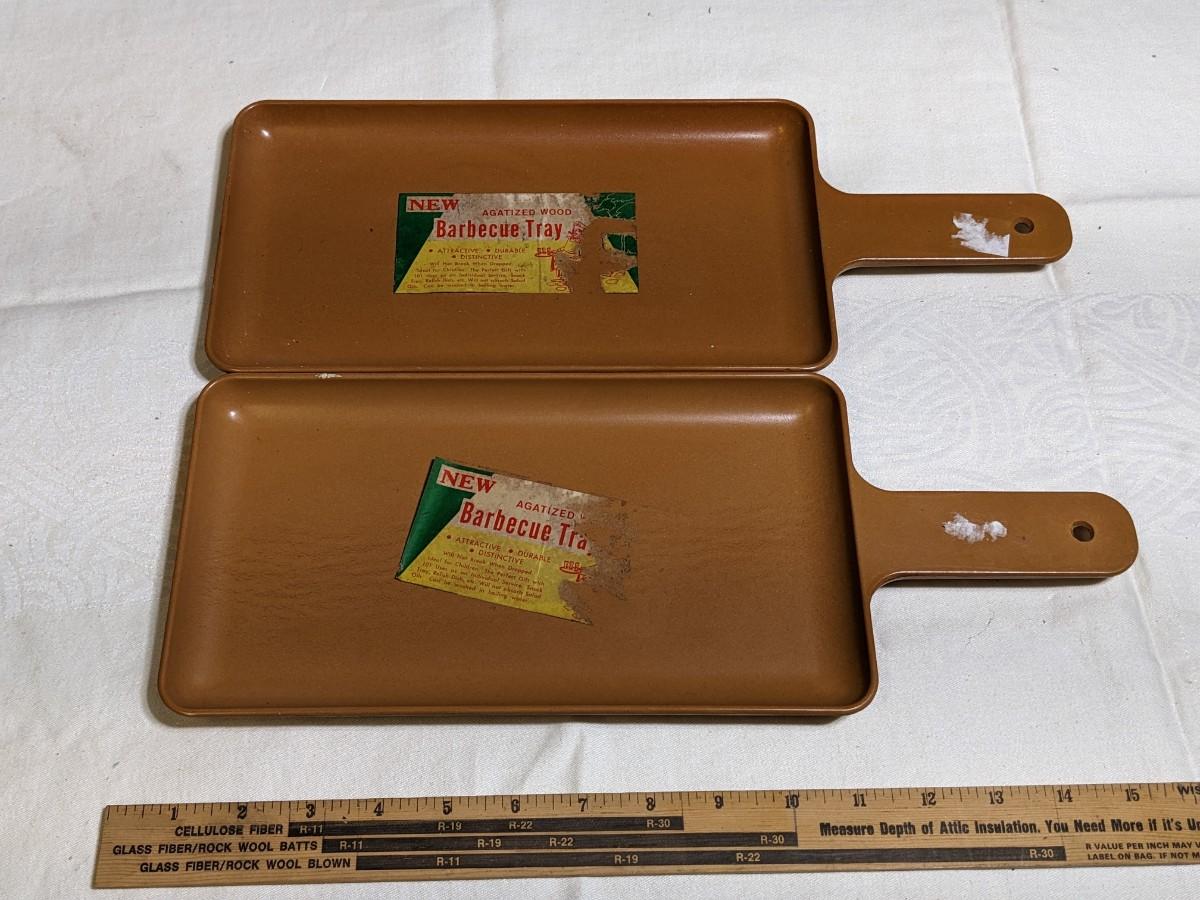 2 NOS Ellingers Agatized Wood Barbeque Trays