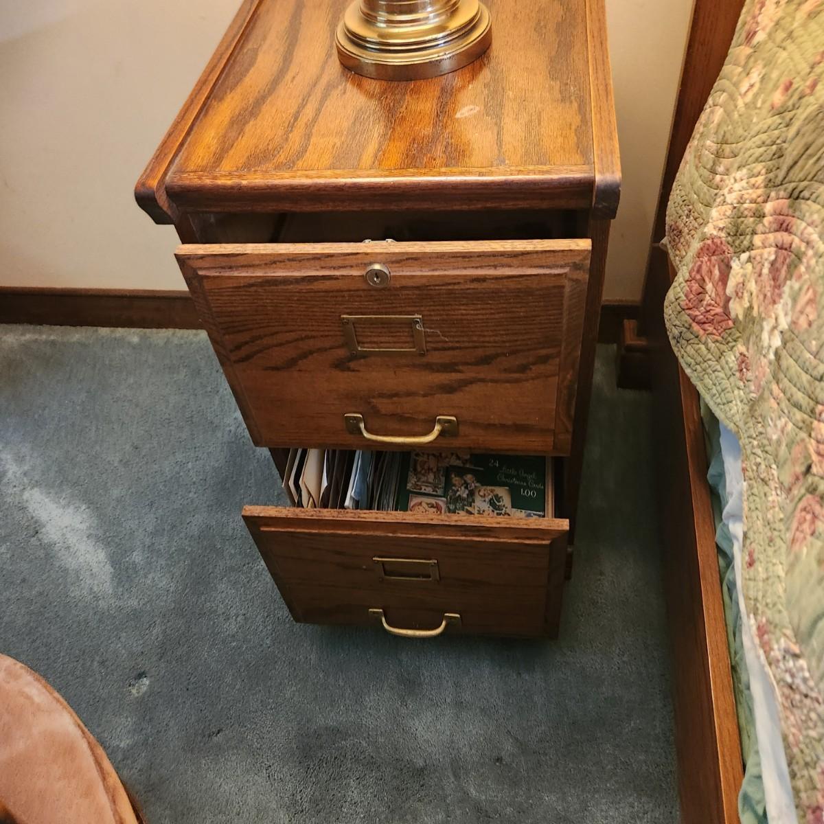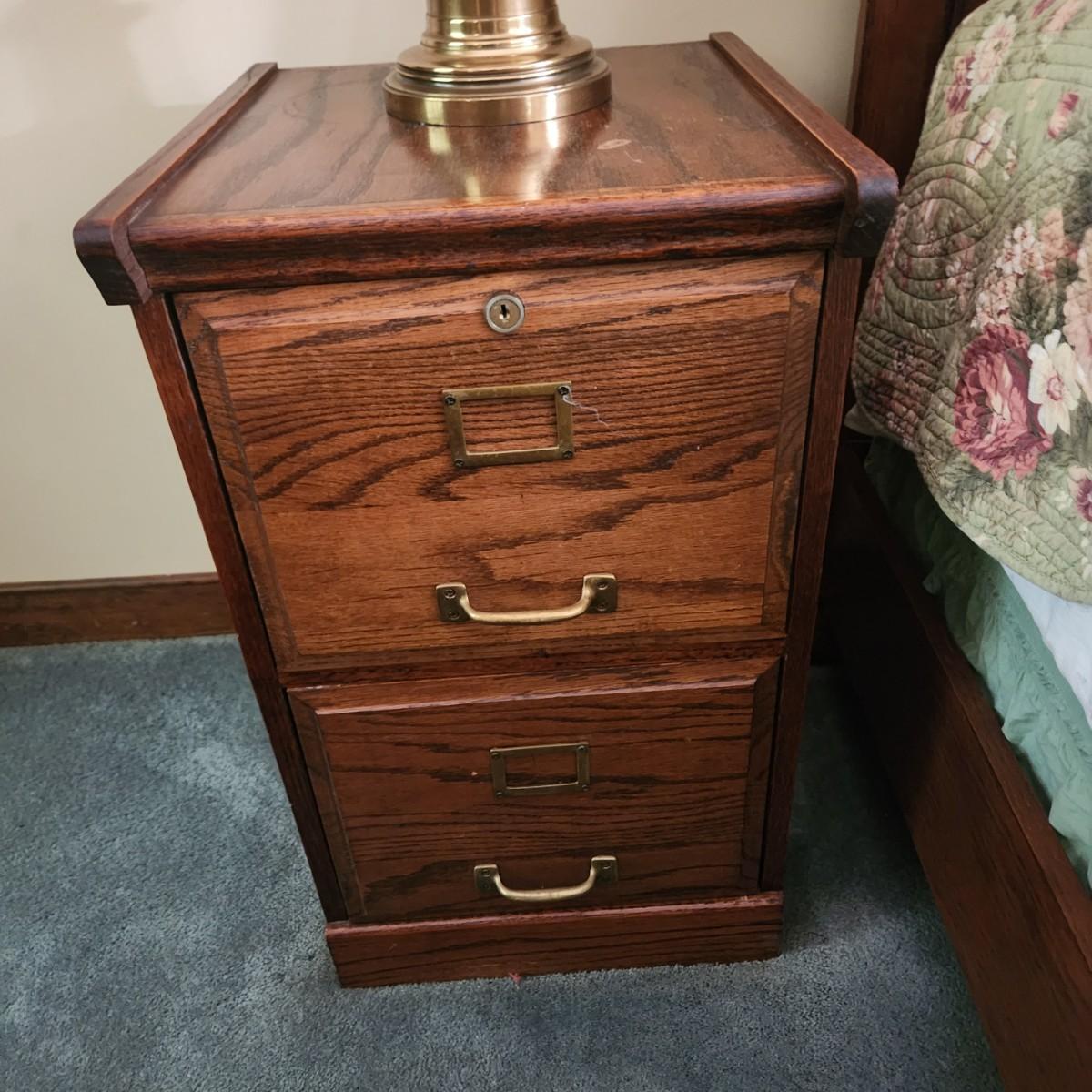 2 Oak 2 Drawer Side Table File Cabinet 16x17x28