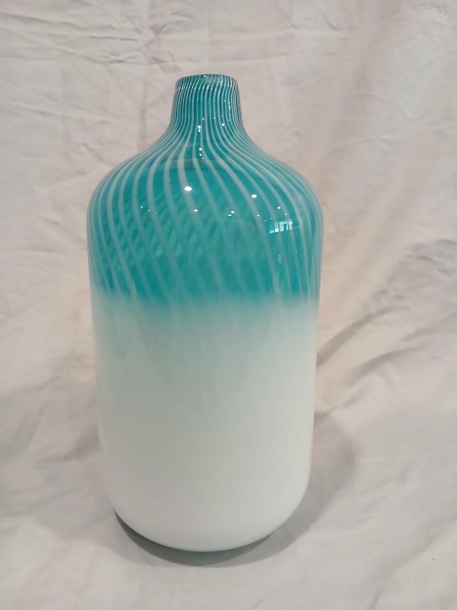 2 of 2 Blue & White Striped Art Glass Vase