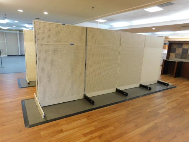 2 of 2 Double Sided Gondola 4 Panel Shelving Peg Board Extended Hght 16'x6.5'