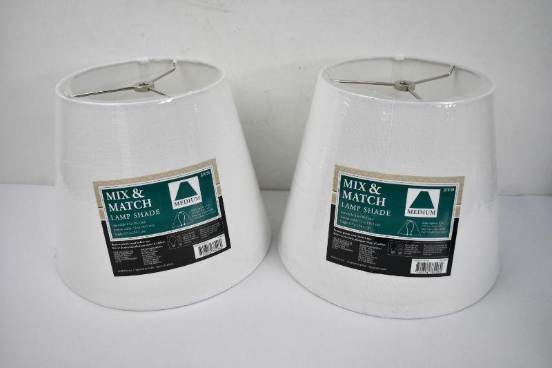 2 Off White Lamp Shades, Medium Size, Top 8" Across, Bottom 12" across, Height 9.5" - New